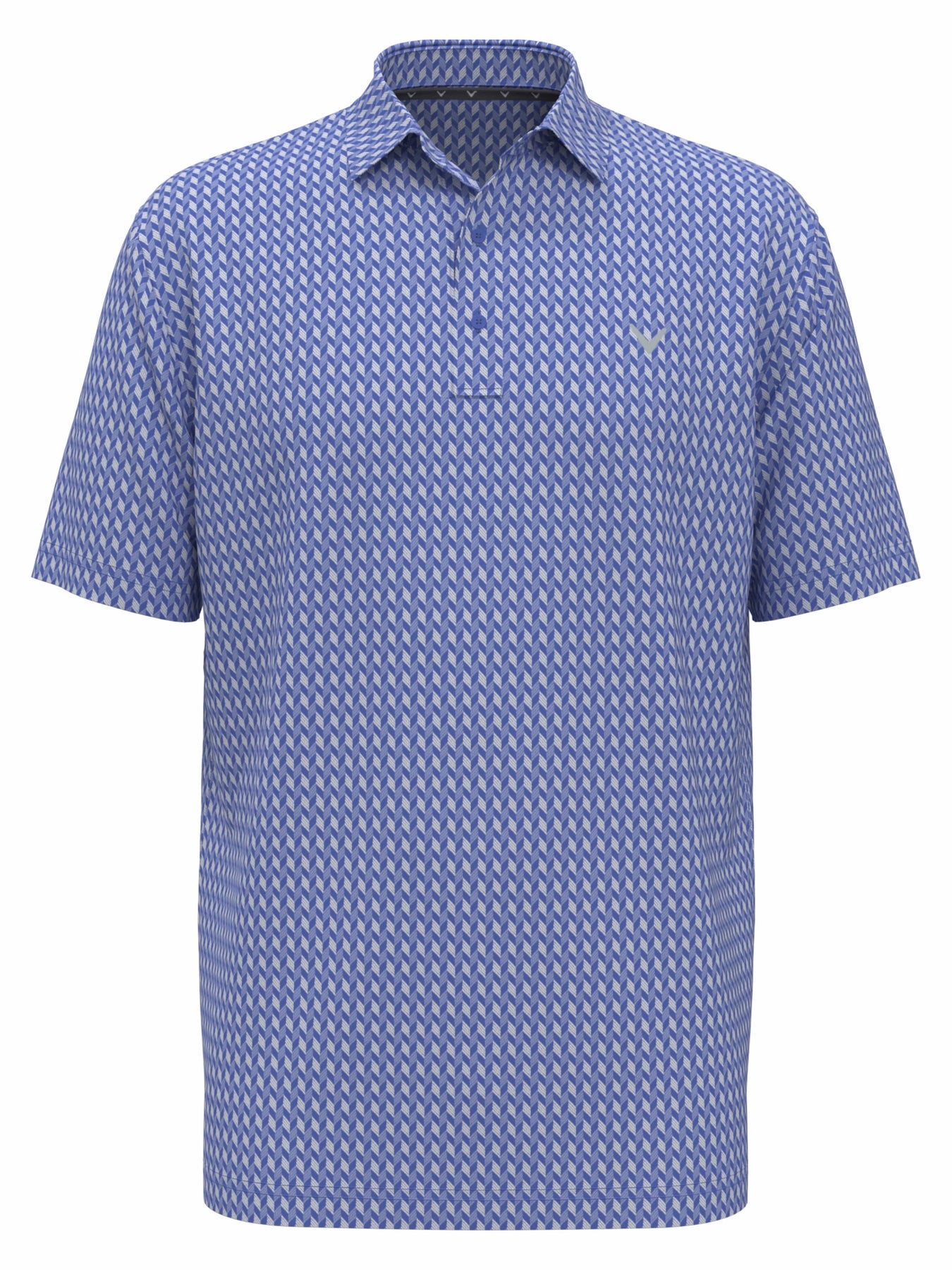 Complete your casual look on the course and beyond with this Callaway golf polo. Featuring a classic polo design and chevron print, this versatile men's golf shirt has a smart look that's just right for your next game or casual events. Soft jersey fabric offers comfort while moisture-wicking technology helps you feel dry all day.