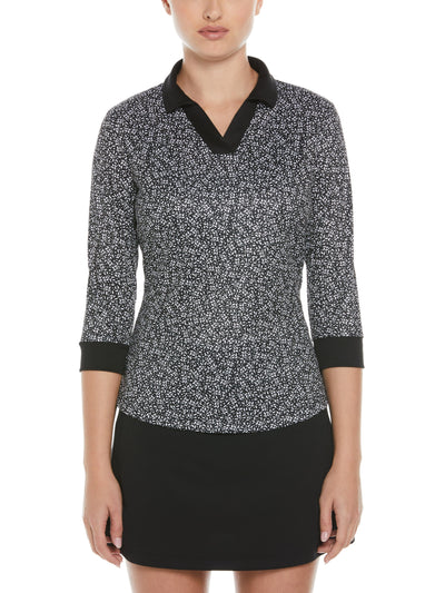 Womens Essentials Plus Geo Print Open Placket Golf Polo - PVKFE070RT