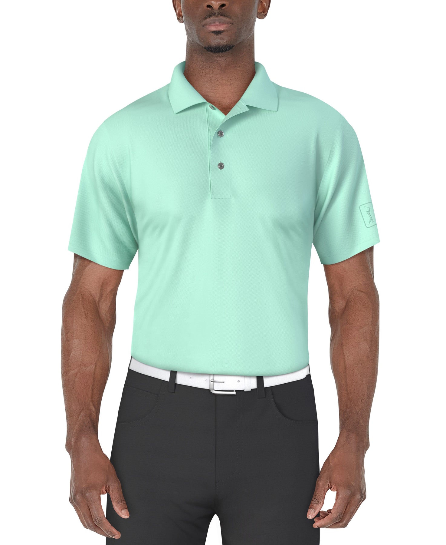 This PGA TOUR Apparel golf polo shirt for men is the perfect blend of style and comfort. This golf top is crafted with mesh fabric and features innovative ventilation and moisture wicking properties to help keep you feeling cool, dry and fresh from the first hole to the last. The classic, solid color design makes it easy to pair with your golf wardrobe for effortless style.