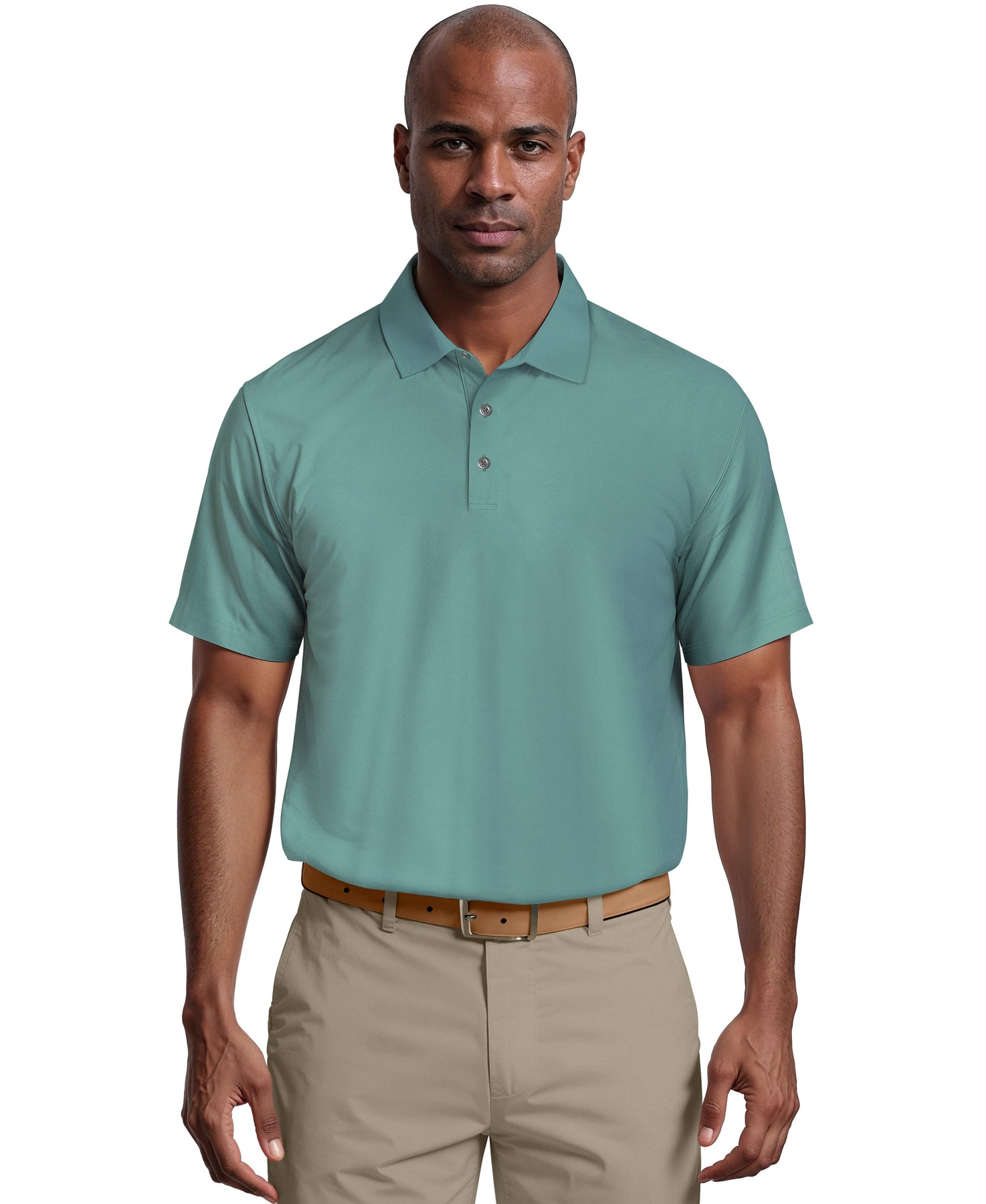 Stay comfortable when your game heats up in this PGA TOUR Apparel men's golf shirt that features Airflux ventilation and mesh for enhanced breathability. Moisture-wicking technology keeps you feeling dry while sun protection blocks out UV rays. The versatile, solid color design is easy to pair for effortless styling.