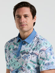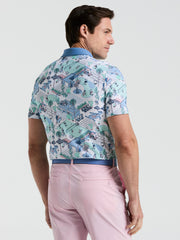 Bring a little fun to your golf attire with this Original Penguin men's polo featuring an eye-catching Palm Springs inspired print. The single knit fabrication is lightweight for sporting comfort, while added stretch delivers a superior fit with flex. On warmer days, the moisture-wicking fabric keeps you feeling dry and fresh. Your everyday polo shirts have met their match with this fun take on classic golf wear.