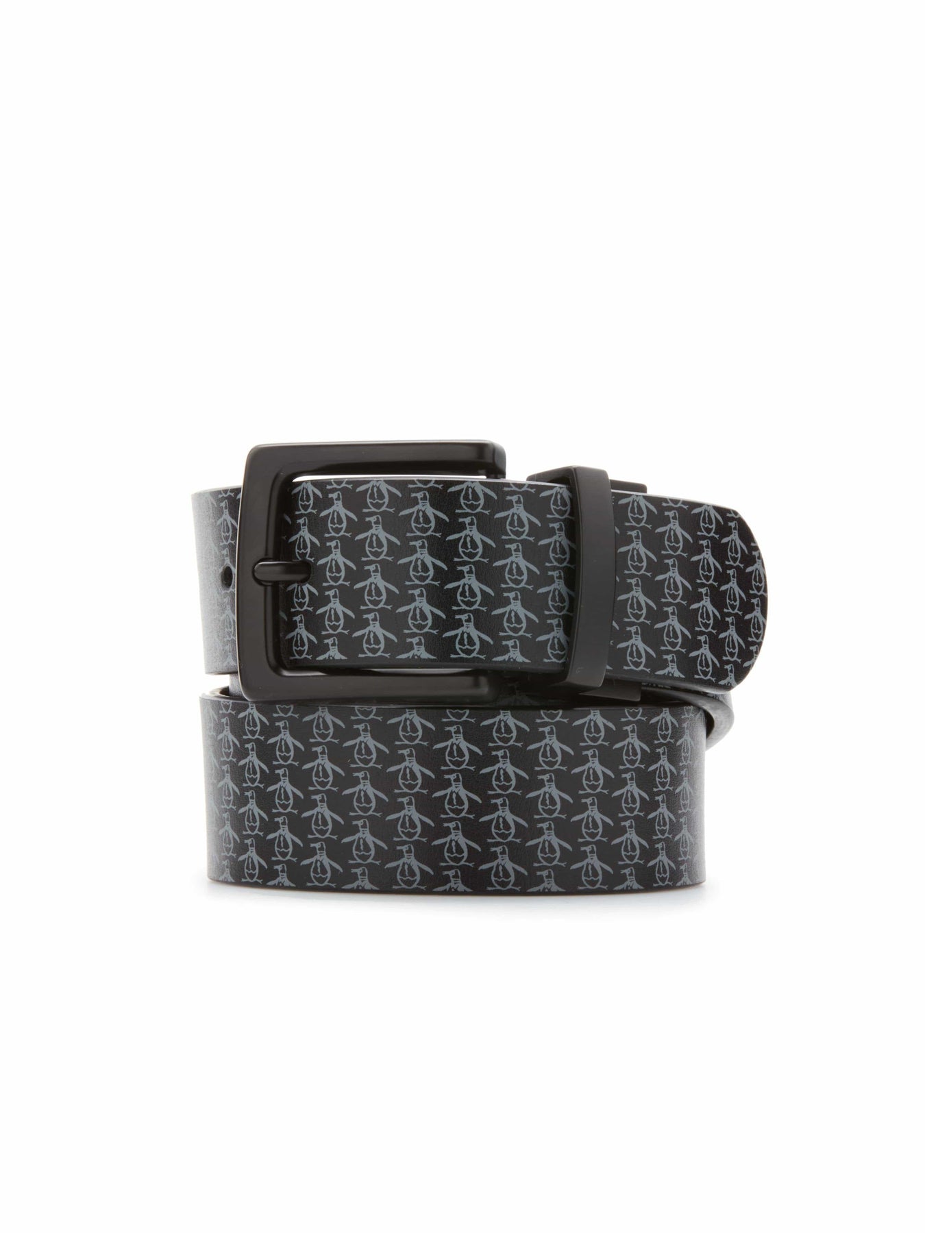 This Original Penguin men's leather reversible belt is a stylish and versatile accessory designed for the modern man. The 100% leather belt features a reversible metal buckle, allowing you to switch between an allover mini Pete the Penguin print on one side and a sophisticated solid color on the other. Experience the quality craftsmanship of this premium leather belt, perfect for dressing up or down any outfit.