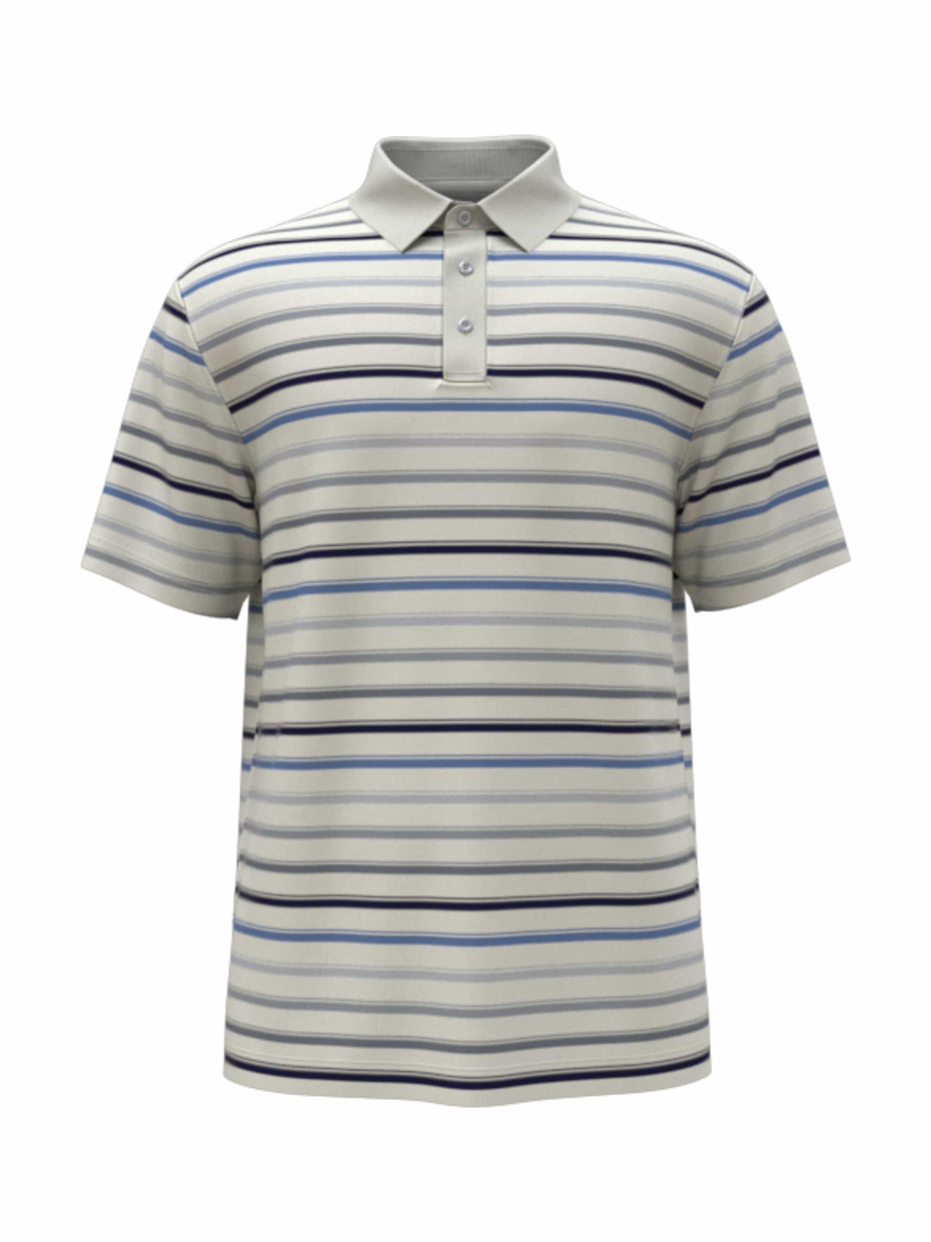 Play to win in this fashionable and functional PGA TOUR men's golf shirt. Featuring a versatile all-over stripe print and a solid self-fabric color, this short sleeve golf polo is sure to become a favorite. Interlock fabrication and stretch shoulder seams provide flexibility as you bend and swing, and moisture-wicking technology helps to keep you feeling dry. This athletic-fit shirt is equipped with built-in sun protection for added peace of mind as you play outdoors.