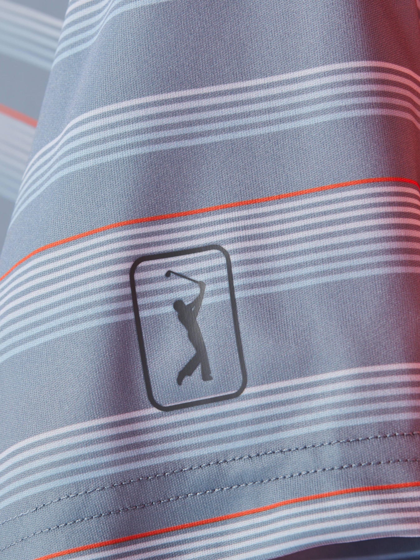 Comfort and style unite in this men’s polo shirt from PGA TOUR APPAREL. Interlock fabrication provides natural stretch for all-day comfort while the stretch shoulder seams help enhance freedom of movement for every swing. Moisture-wicking and built-in sun protection help keep you dry, protected and focused on your game. The sporty stripe print with solid collar adds interest to your golf wear collection and you can toss it in the washing machine for easy care.