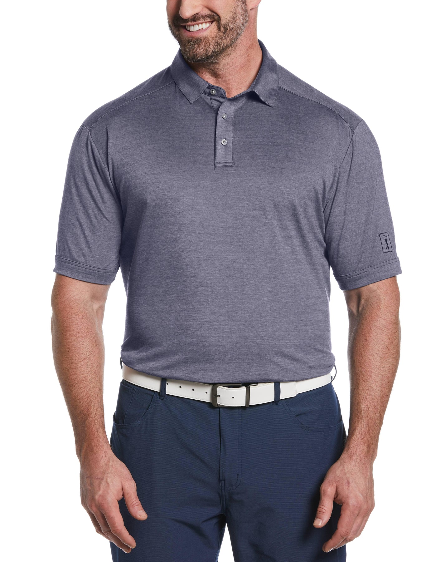Finetune your swing in sleek style with this PGA Tour men’s golf shirt. The men’s polo shirt is crafted from a durable double knit fabric, with performance stretch to help ensure a comfortable fit. Moisture wicking pulls sweat away from your body to help speed up the material's drying time, while sun protection helps to block damaging UV rays. Machine washable and loaded with practical performance technologies, this is a golf shirt you can count on.