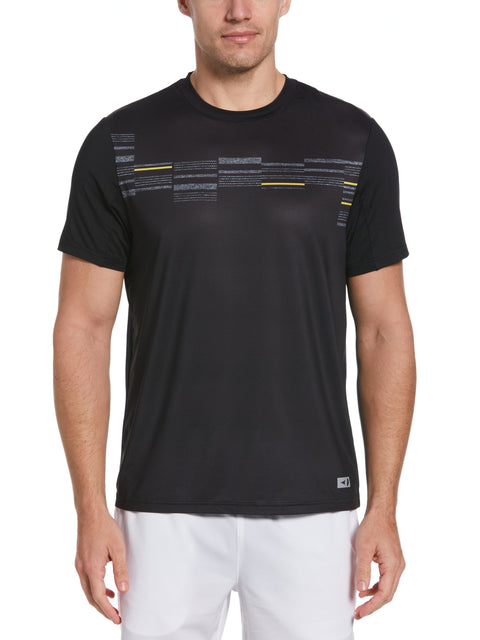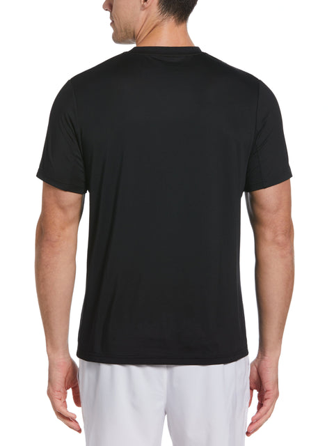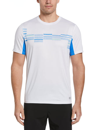 Look and feel like a pro in this Grand Slam men’s tennis t-shirt. The lightweight mesh fabric and 360 stretch provide breathable flexibility with every swing. This short sleeve tennis shirt is equipped with moisture wicking and UV protection for those sunny afternoons on the court, and the versatile broken chest print adds eye-catching style.
