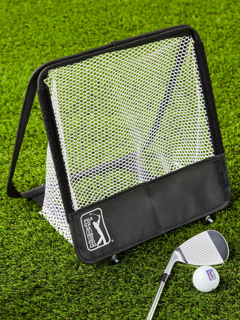 This convenient PGA TOUR golf game makes it easy to fit some chipping practice into your schedule. Featuring a portable design, the golf chipping practice game is a great way to work on boosting the accuracy of your chip shots in the backyard or any other open space. Durable construction helps the golf chipping game stand up to shot after shot as you perfect your short game, while the PGA TOUR logo on the front panel adds an official finishing touch.