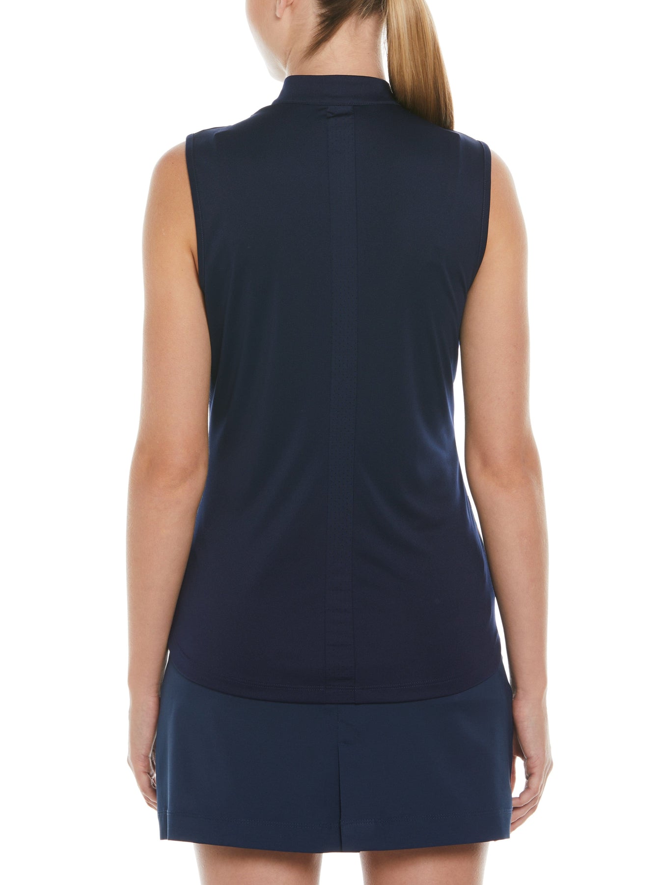 For stylish and functional ladies golf apparel, choose this PGA TOUR APPAREL women's sleeveless golf shirt. The women's golf shirt is moisture-wicking for a dry feel and has sun protection to help block harmful UV rays. Its stretch shoulder seams ensure freedom of movement while interlock fabric provides natural stretch for a comfortable fit. The shirt features a stylish color block print and an asymmetrical mesh insert for a sporty look.