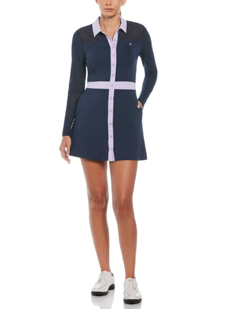 Discover the perfect addition to your wardrobe with this Original Penguin shirtdress, a stylish and versatile dress for women. This day dress features long sleeves, comfortable stretch, and a lightweight single knit fabric, making it an ideal choice for a variety of occasions. Made from 44% recycled polyester sourced from plastic bottles, this eco-friendly women's dress showcases a unique color block stripe design, adding a touch of sophistication and pop of color to your look. Embrace sustainability and fashion with this timeless shirtdress that will elevate your everyday style.