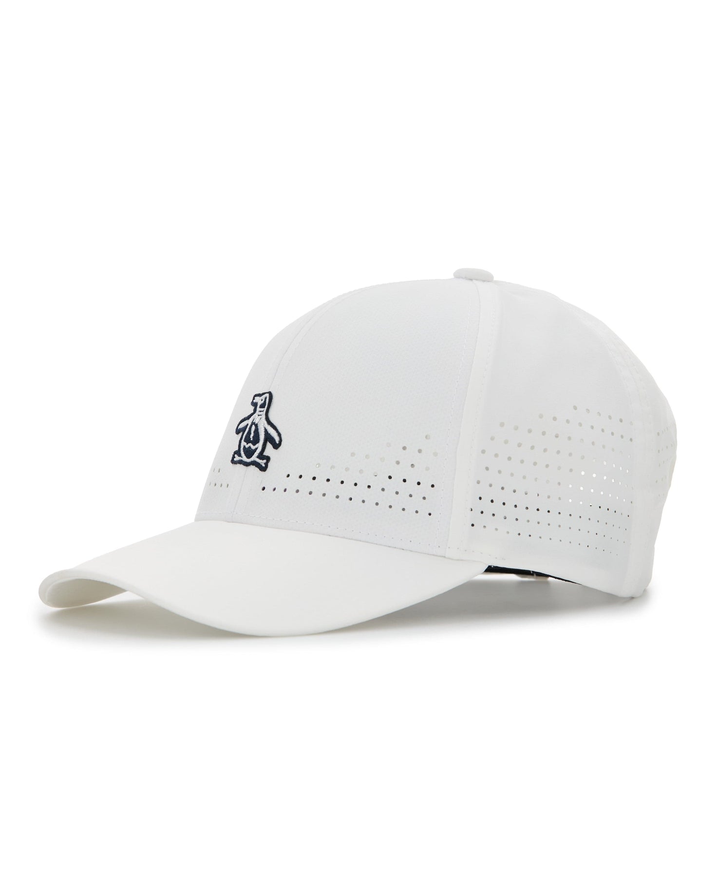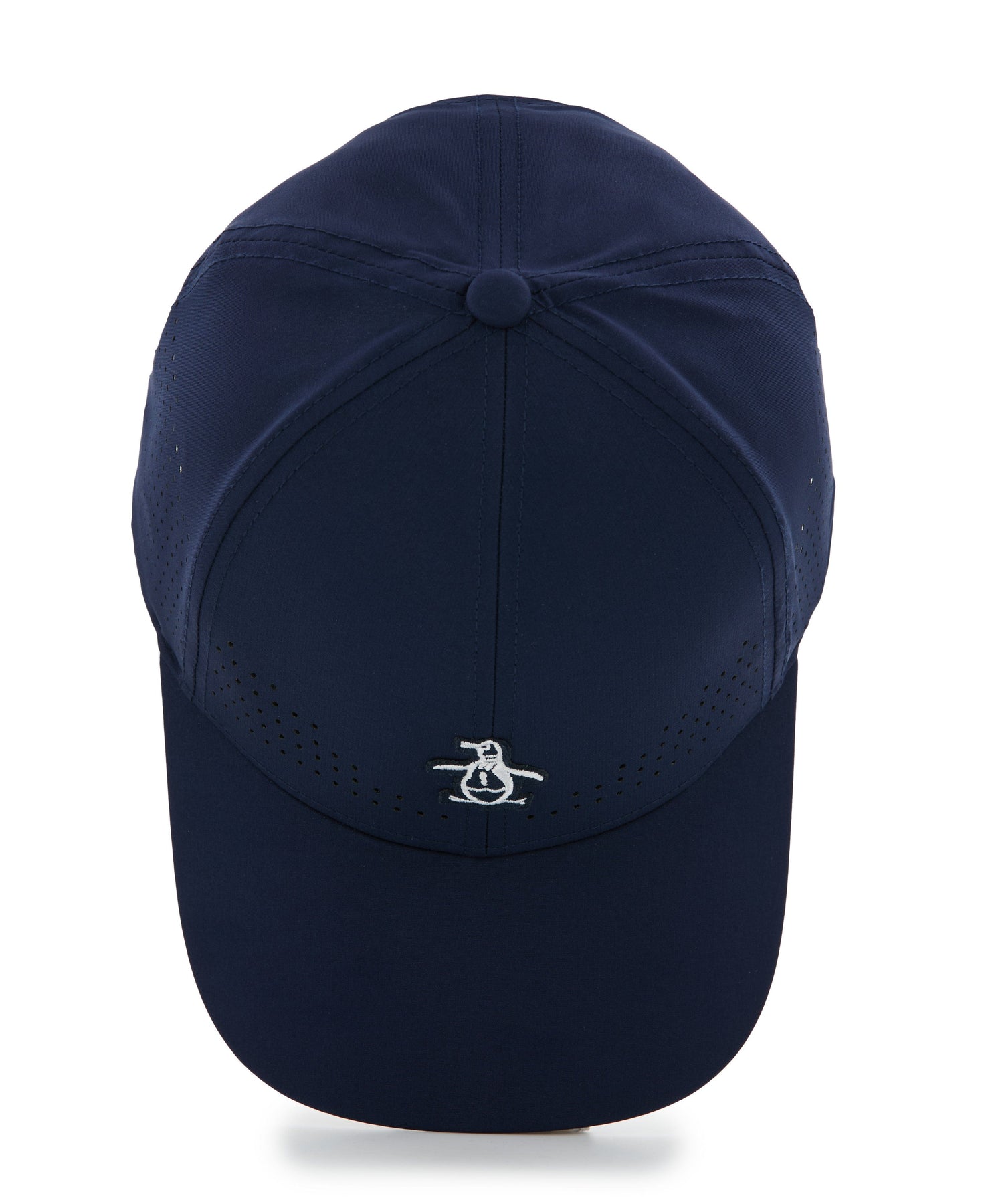 Top off your favorite casual looks with this Original Penguin golf hat for men. Featuring a classic baseball cap silhouette with an adjustable buckle closure for custom comfort, this golf cap looks great on or off the course. A large embroidered felt Pete patch pops on the front, and inside logo tape and an embossed Pete on the clasp add even more Original details. This lightweight cap features an allover perforated pattern for added breathability and the interior FlexFit sweat patch helps keep you feeling comfortable as your game heats up.