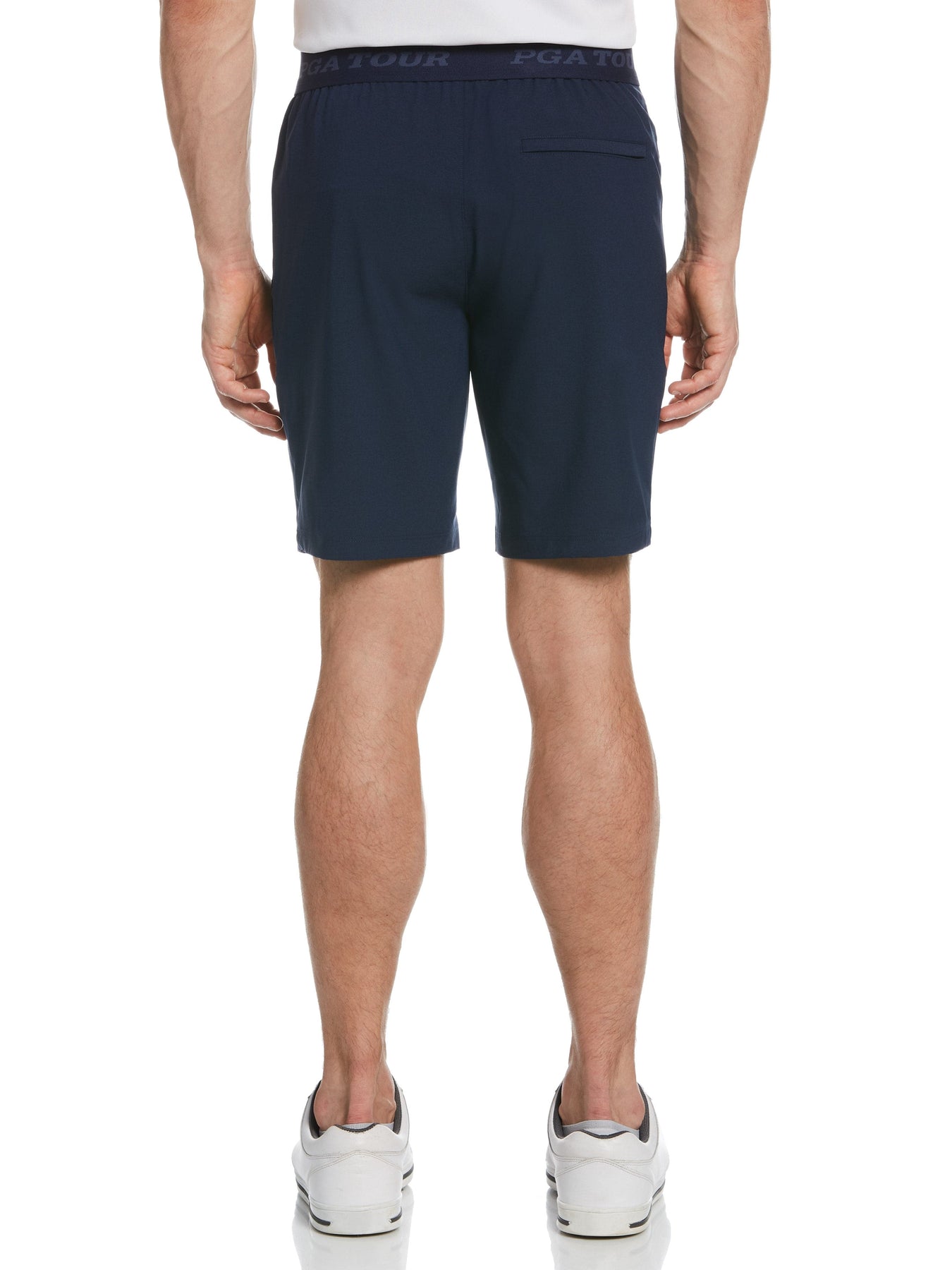 Play your best game in these stylish and sporty men's golf shorts from PGA TOUR Apparel. Dobby fabrication creates subtle texture. Stretch in the fabric and an elastic waistband give you a full range of motion for flexibility and comfort. The golf shorts feature side pockets and a zippered back pocket to keep small items secure through every round.