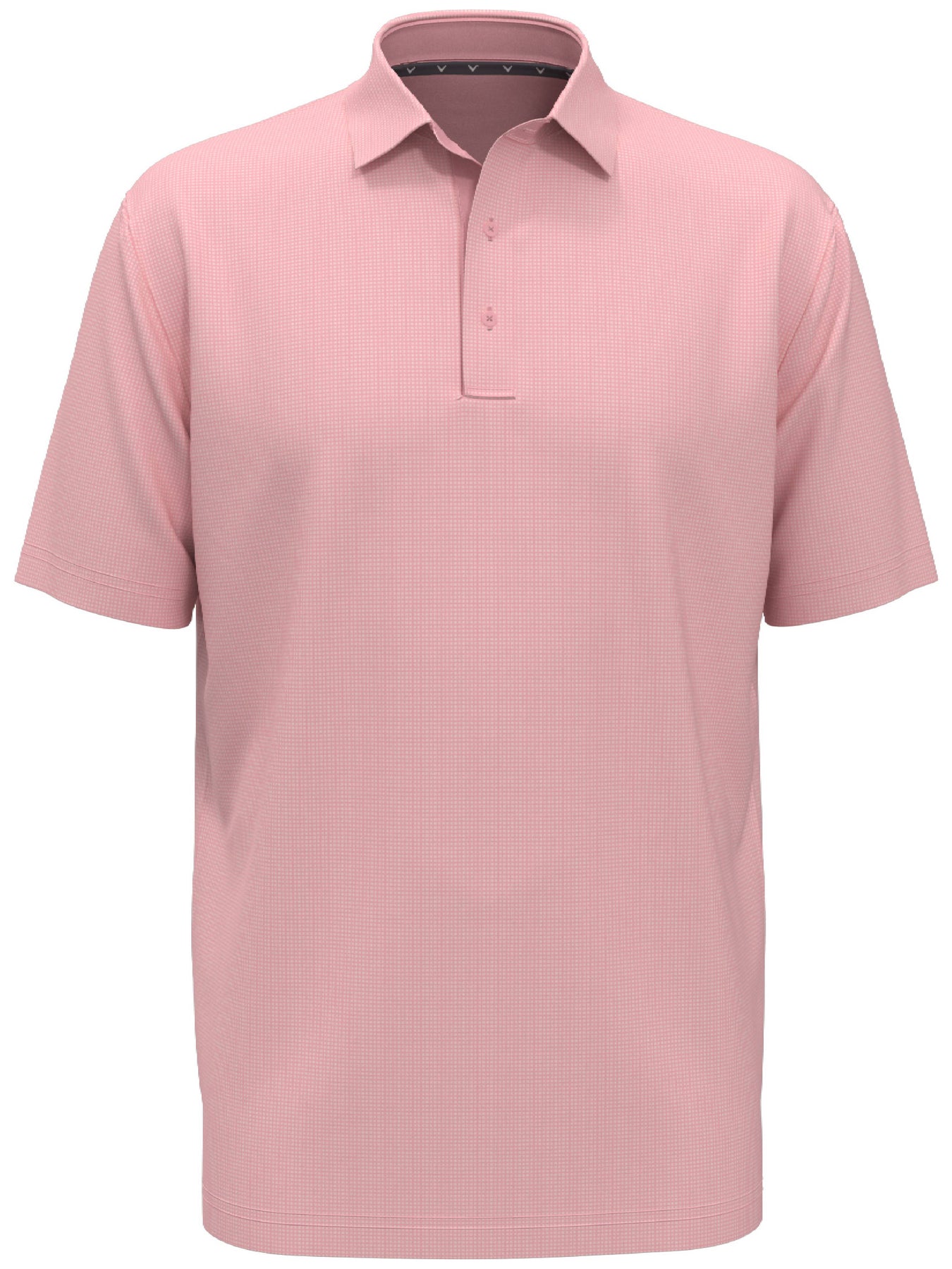 Equal parts casual and sophisticated, this classic men’s polo shirt from Callaway transitions effortlessly from lunch with coworkers to a sunny round of golf. The men’s golf shirt is crafted from a soft, lightweight jersey knit, with moisture-wicking technology to help keep you feeling fresh and dry. The fabric has sun protection to help guard against damaging UV rays, while added stretch lets you make each swing comfortably and without feeling constricted. It’s topped off with the Callaway chevron logo at the left chest and a self-fabric collar that creates a clean, unified look.