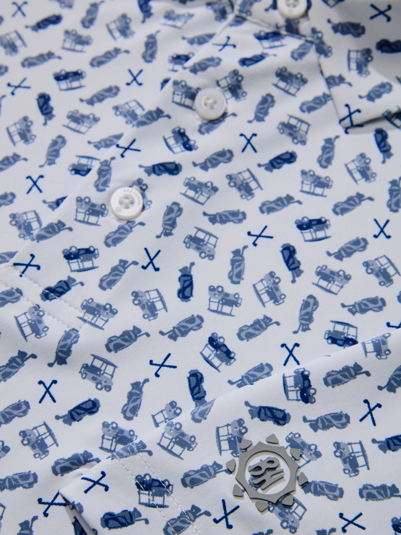 You will turn heads in this stylish Ben Hogan men's golf polo shirt and its fun, golf-themed pattern. Great for warm and sunny days out on the green, the golf top is made with soft single knit fabric. Moisture wicking helps to move sweat away from your body to keep you feeling dry and comfortable. The versatile casual design of this short sleeve golf shirt also makes it a great choice for lunch or a relaxing day around town.