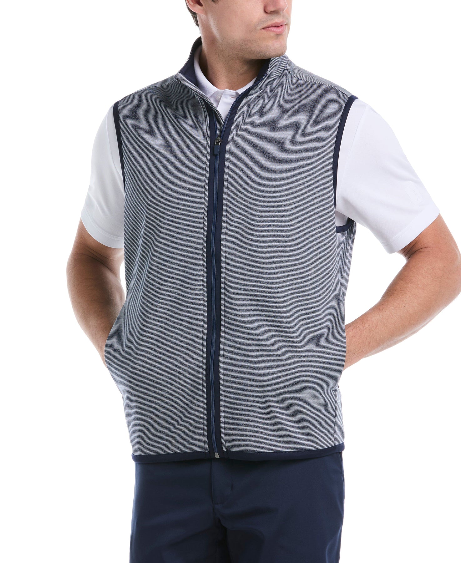 Stay warm and comfortable on the course in this PGA TOUR Apparel men's golf vest. The double knit fabric provides a great fit that moves with you and also looks fantastic. Featuring horizontal heather fleece this golf vest provides modern versatility.