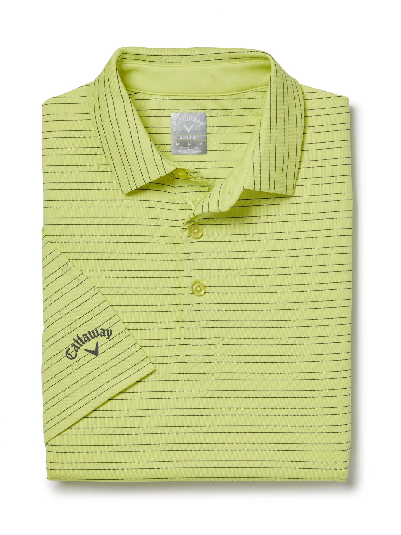 Keep your cool on the course in this Callaway men's golf shirt. Ventilated fabric with cooling technology circulates air through this short sleeve golf polo while Opti-Dri™ technology wicks moisture away from the skin. Swing Tech™ technology and added stretch help ensure a full range of motion so you can bend, twist, and swing in comfort. The versatile fine line print and classic three-button placket, are sure to make this one of your go-to golf tops.