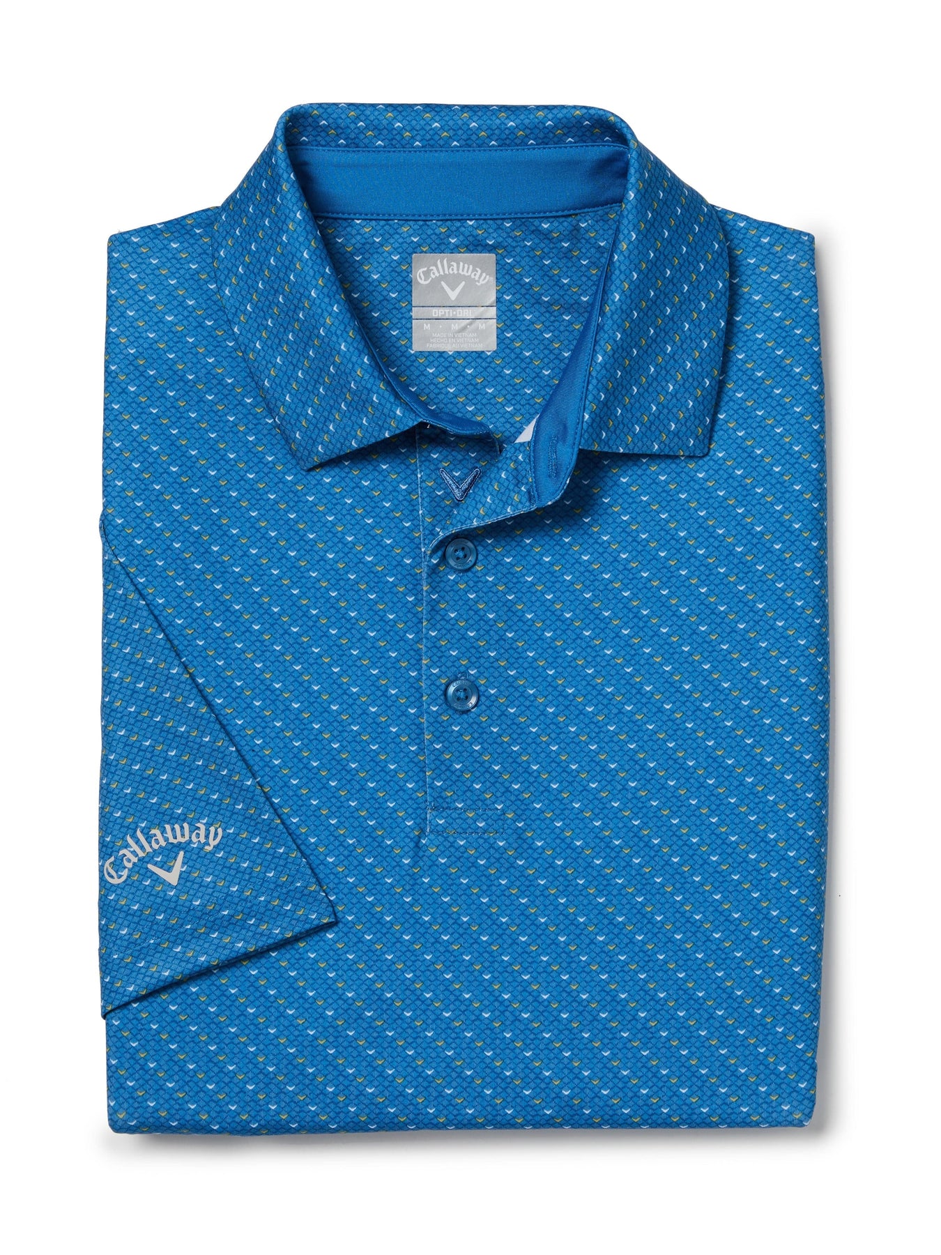 On the green or in the clubhouse, this Callaway men’s golf shirt has you covered. A versatile allover chevron print adds visual interest to this easy-care golf polo. Swing Tech™ technology and added stretch in the fabric help ensure a full range of motion with every swing. Great for those sunny days on the course, this short sleeve golf shirt features moisture-wicking Opti-Dri™ technology, and UPF 50 sun protection fabric.