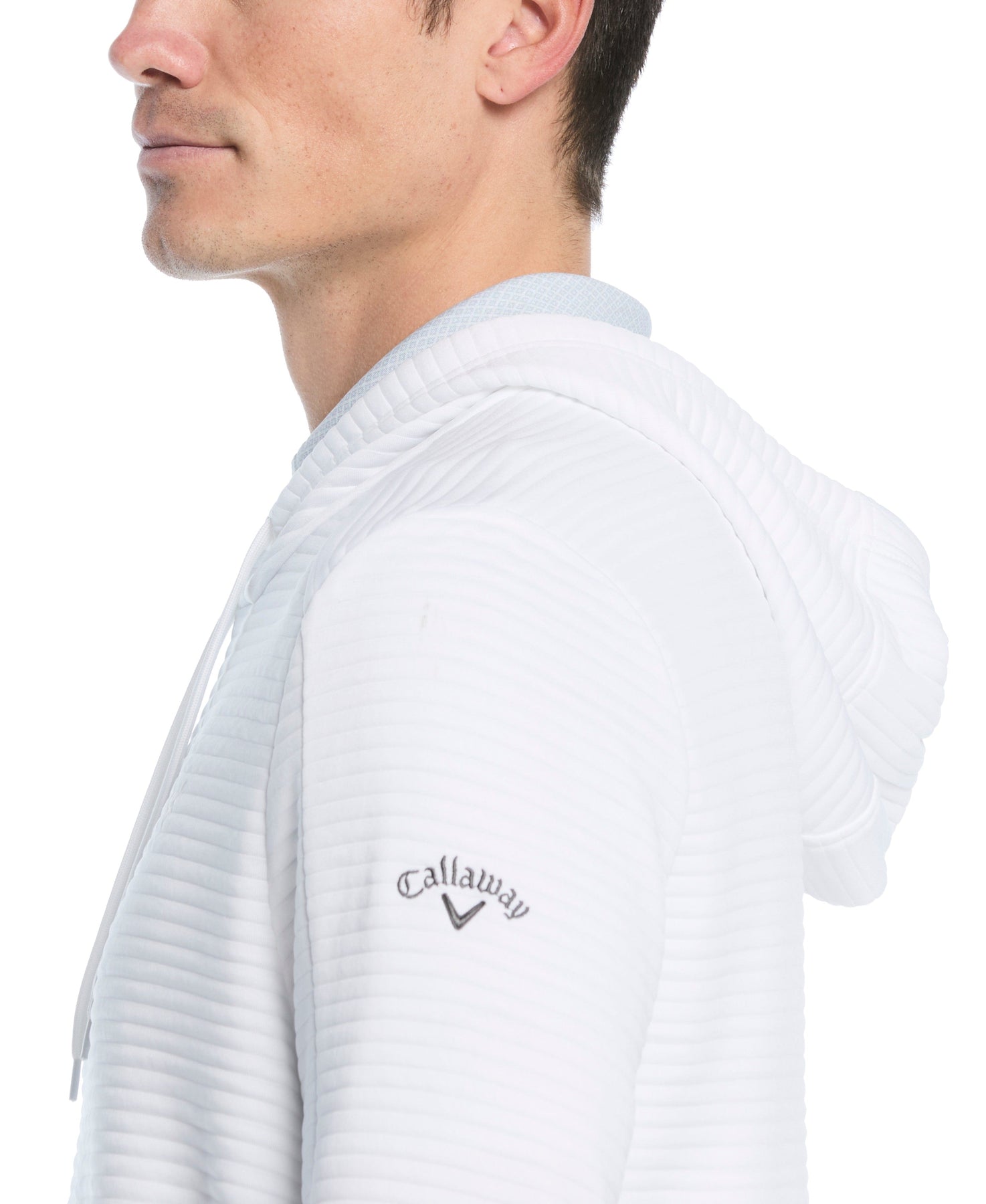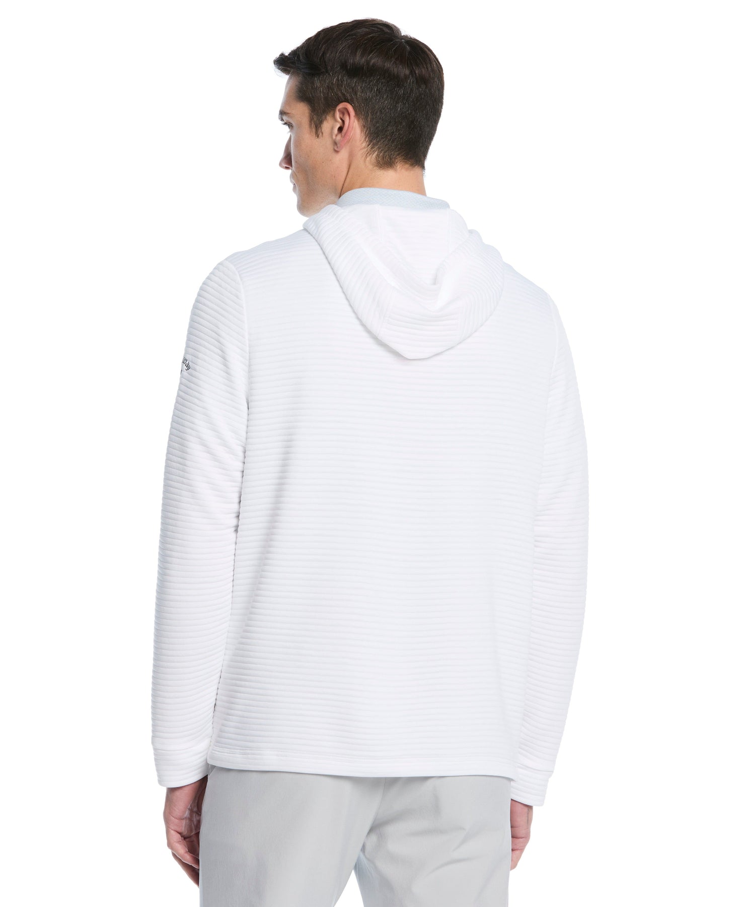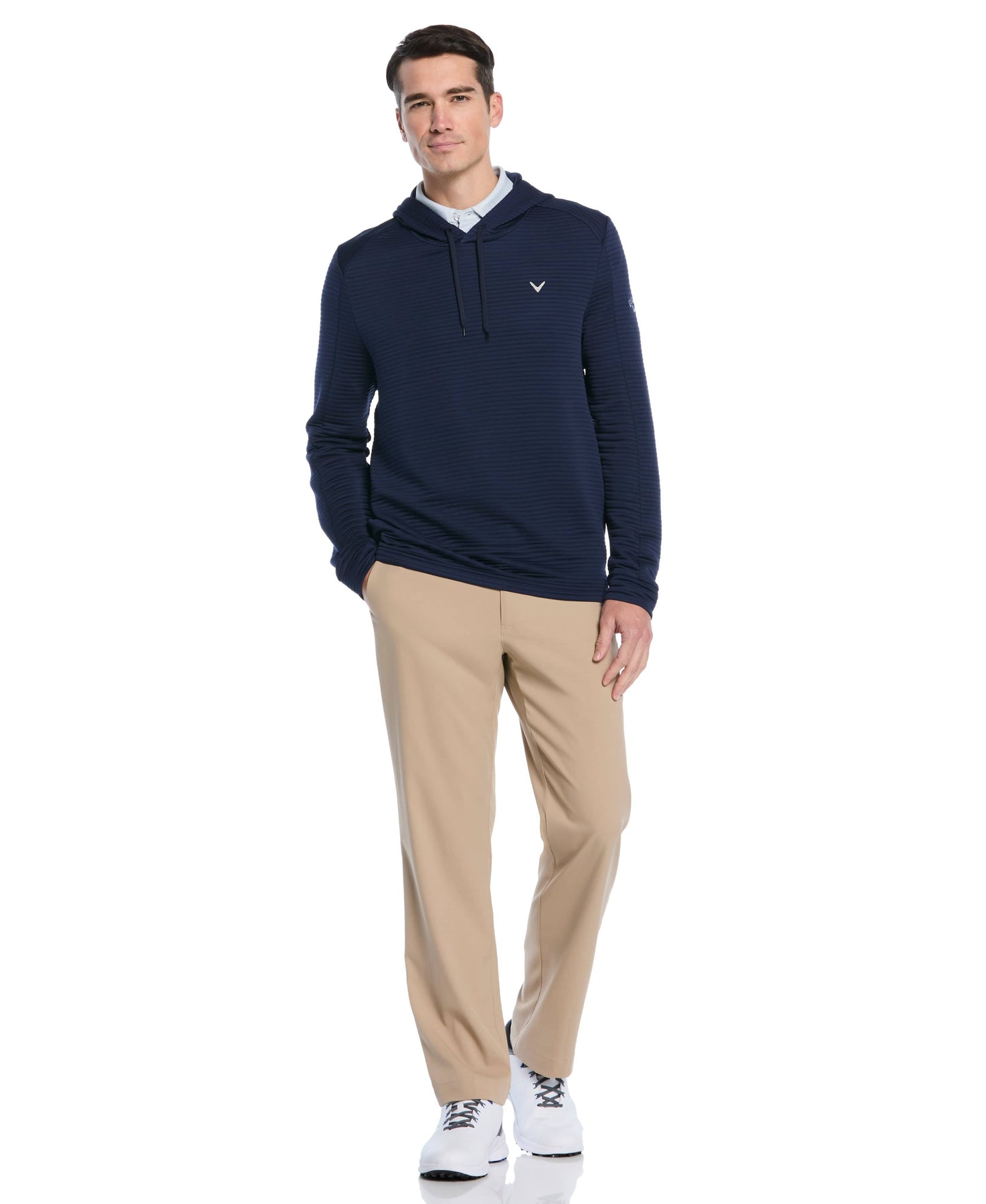 Stay comfortable and protected on the course with this Callaway men's golf hoodie. The garment provides generous stretch, allowing for a complete range of motion with every swing and movement. Its hooded design delivers extra coverage when temperatures drop, blending performance with a sleek aesthetic. This midweight golf top is perfect for layering, offering superb comfort and functional style for any golfer.