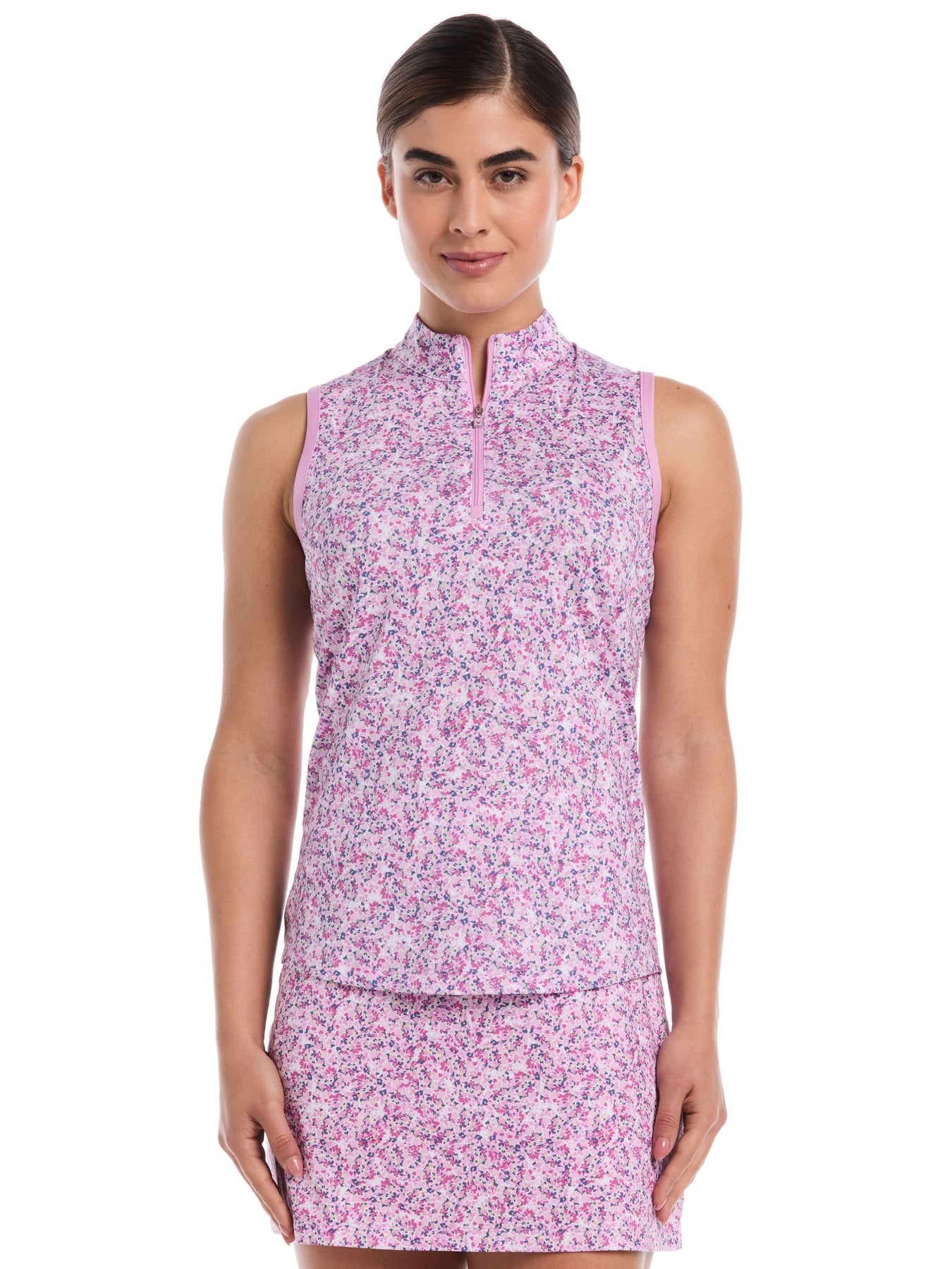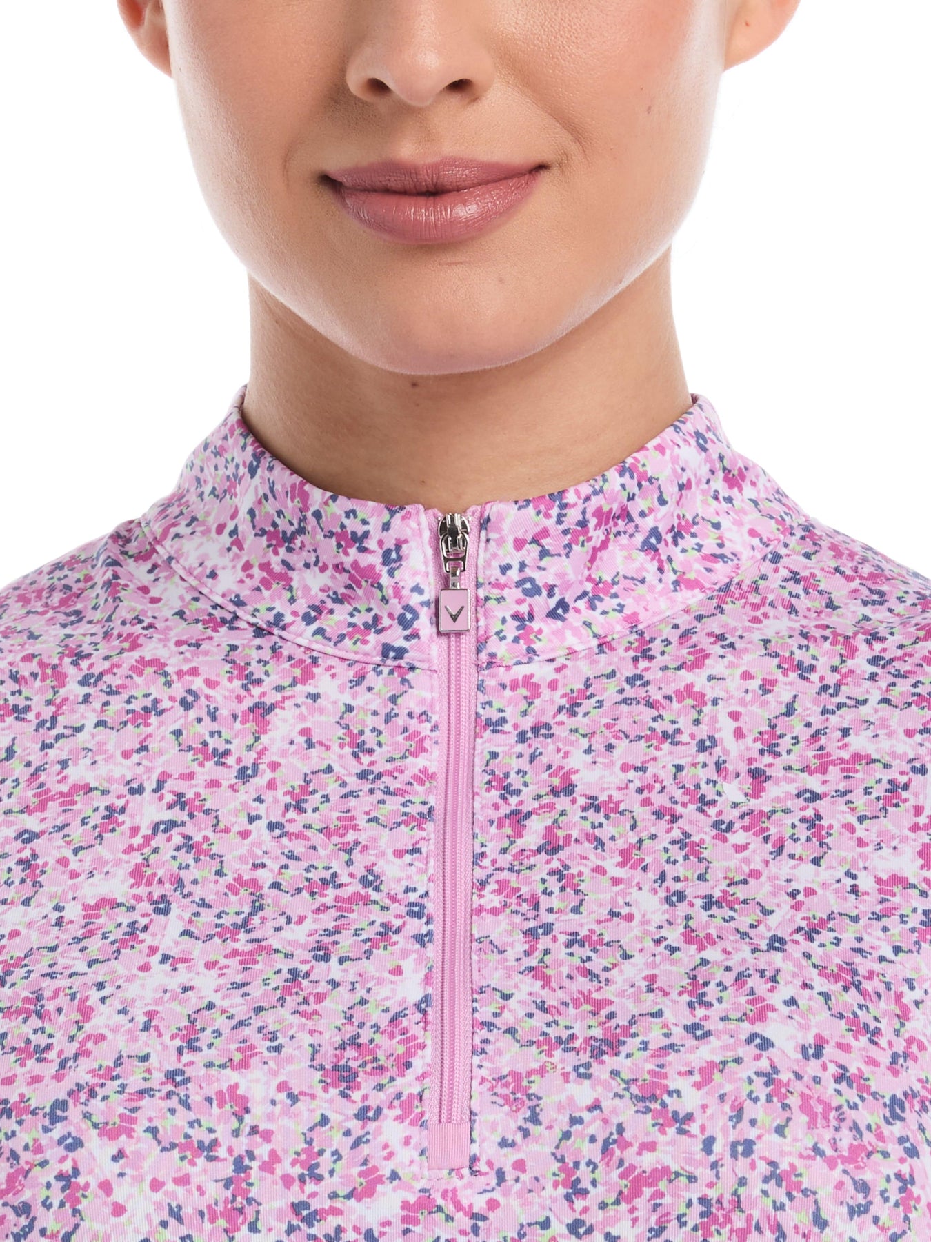 For on point style on the course and beyond, choose this Callaway sleeveless golf shirt. This women's golf shirt sports an all-over mini floral print for stylish flair that takes your sportwear up a notch. With a front zipper closure for customizable comfort, this lightweight golf top also has added stretch for smooth movement and moisture-wicking technology for a dry feel before and after the game.