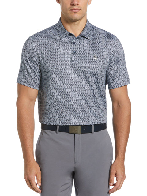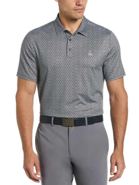 Update your wardrobe with this Original Penguin men’s polo shirt. Printed with an eye-catching floral pattern, this polo top will add plenty of visual interest to any casual outfit. The polo shirt is crafted from jersey knit fabric for soft comfort. The material wicks away moisture to help manage sweat, and it offers a good amount of stretch to let you move smoothly through your day. An eco-friendly option, the polo collar shirt is made from 92% recycled polyester.