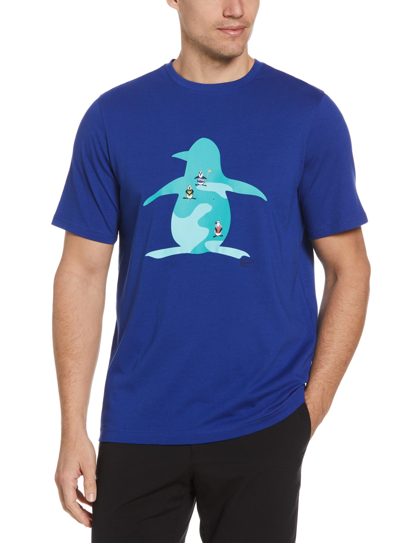 Pete and his penguin pals go golfing on this fun men's tee from Original Penguin. The oversized “Pete’s 18th Hole” chest graphic pops against the solid backdrop of this stylish crew neck shirt. It's crafted with soft and breathable cotton-jersey fabric for casual comfort on golf days or any day.