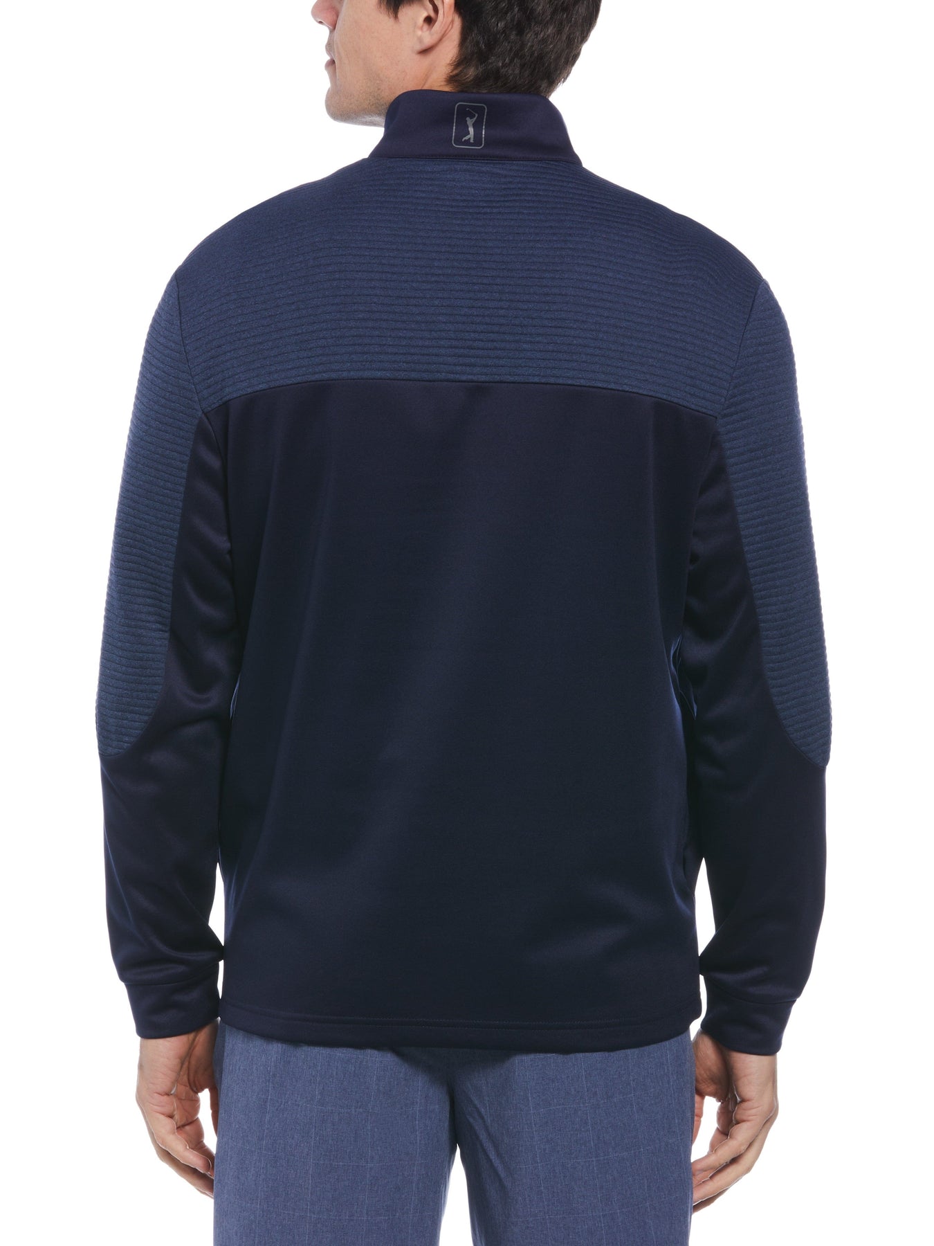 Combat the elements in comfort with this warm and soft PGA TOUR APPAREL men’s golf jacket. Great for all-day wear on the course and out on the town, the Elements Collection golf jacket has sun protection to help guard against damaging UV rays and moisture wicking to help manage sweat. Stretch shoulder seams give you the freedom of motion you need to make each shot smoothly. The jacket is made from a durable double knit fabric, with pro knit construction that delivers both warmth and breathability.