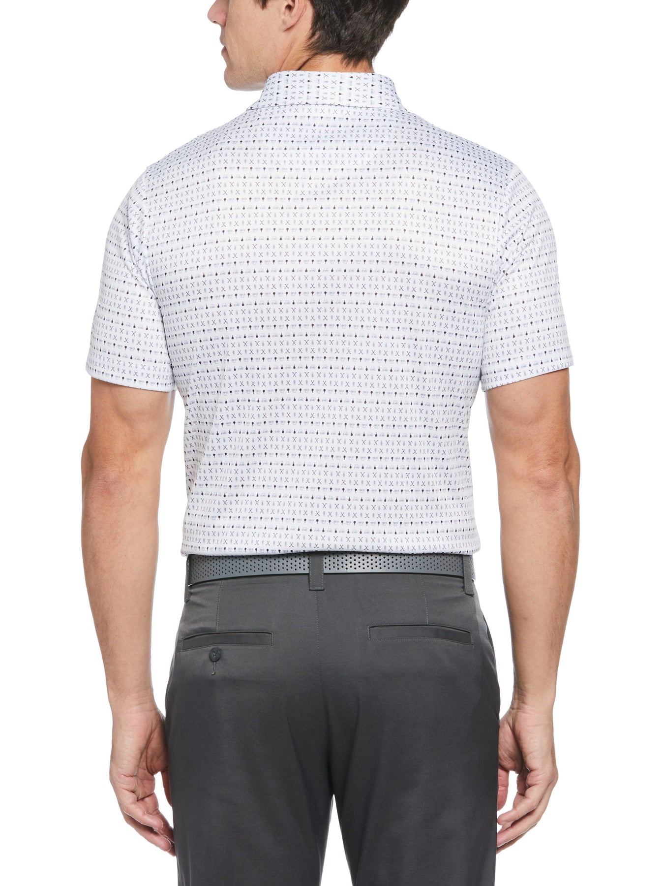 This PGA TOUR APPAREL men’s polo shirt features a fun golf print that shows off your love of the game. The golf shirt is crafted from a soft interlock knit fabric that offers natural stretch for a comfortable fit. It has moisture-wicking technology to help manage sweat, and sun protection provides some valuable defense against damaging UV rays. Stretch shoulder seams add freedom of movement so you can swing with both power and precision. The short sleeve golf shirt’s versatile casual design transitions effortlessly from your round to a relaxing lunch with friends.