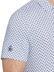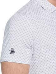 An allover geo print brings a fun retro vibe to this Original Penguin men’s golf shirt. The single-knit fabric is enhanced with stretch for flexible comfort as you bend and swing. With its comfortable self collar and breathable short sleeves, this golf top is an easy choice whether you're heading out for a few rounds of golf or a few rounds of drinks.