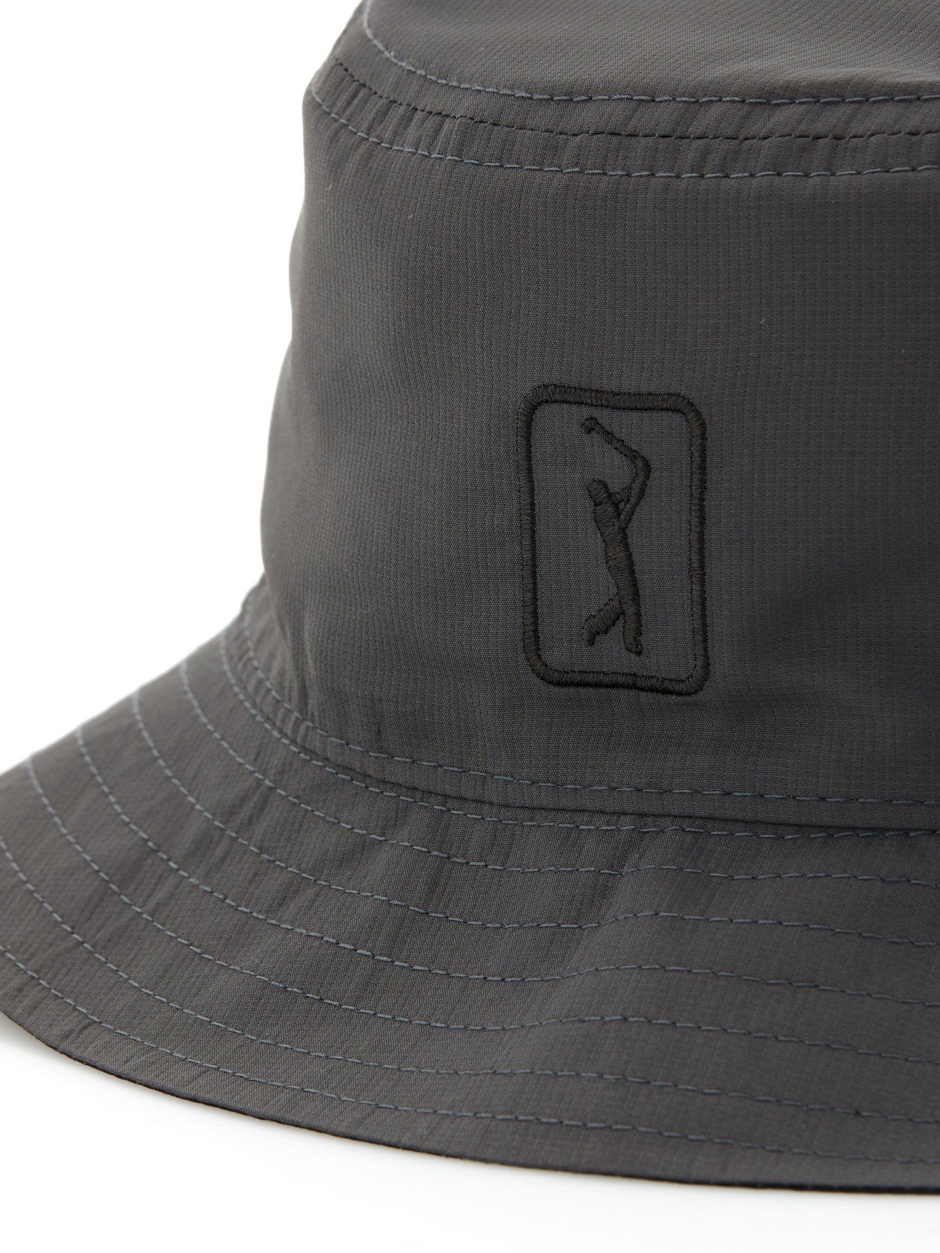 Get two great casual looks in one with this reversible golf bucket hat from PGA TOUR. Crafted from lightweight ripstop fabric, this golf hat has you covered both on and off the course. Built-in UPF 50 protection helps block out the sun’s harmful rays and a 360-degree brim provides further sun protection. A moisture-wicking band prevents sweat build-up as your game heats up and a PGA TOUR logo adds eye-catching detail to both sides of this versatile golf sun hat.