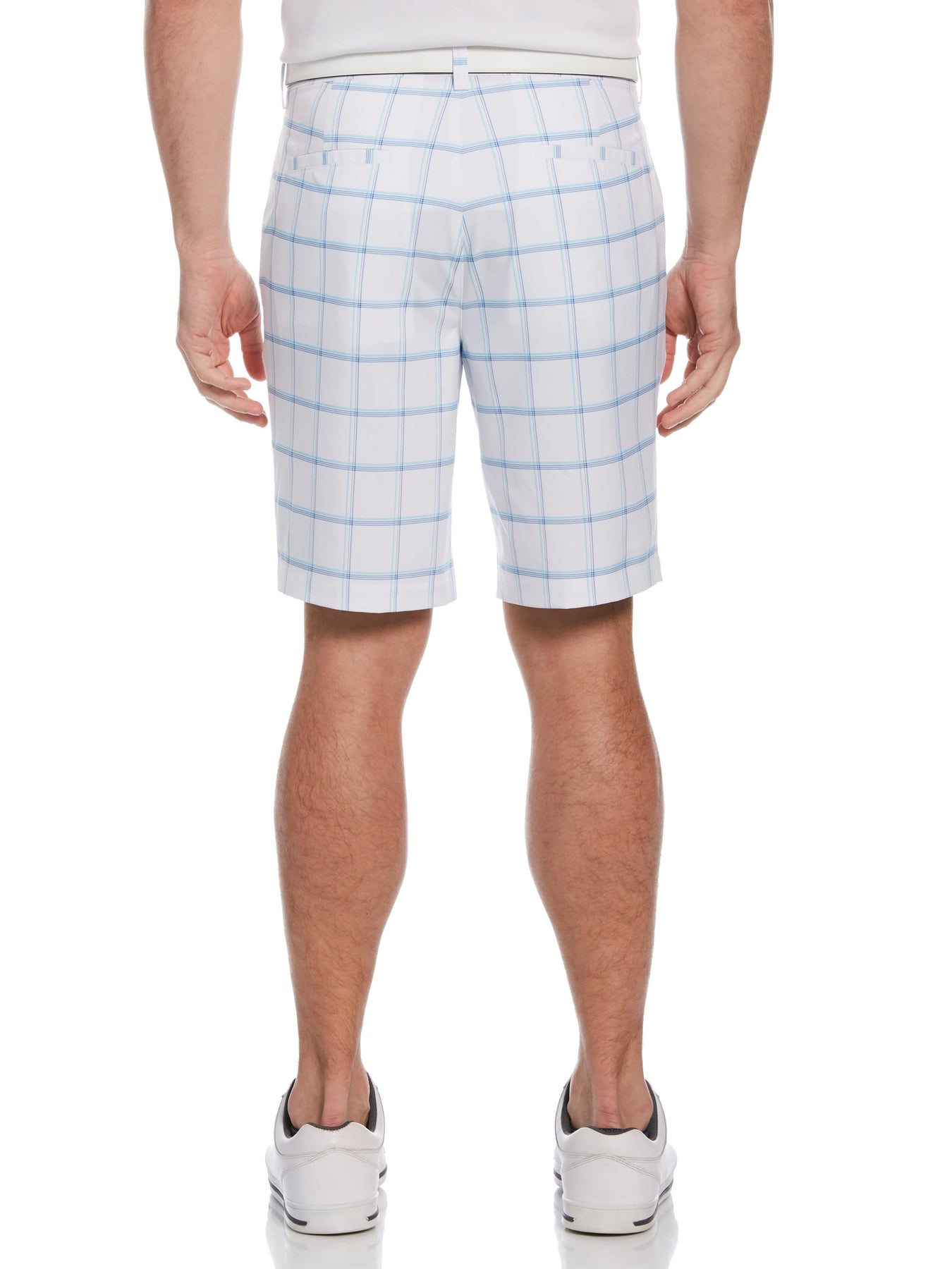 Get smart-casual style on or off the course in these men's golf shorts from PGA TOUR. Plain weave fabrication with performance stretch provides flexible comfort, while sun protection and moisture-wicking technology helps you keep your cool. These versatile golf shorts feature a roadmap plaid print that easily complements a wide variety of golf polos or t-shirts.