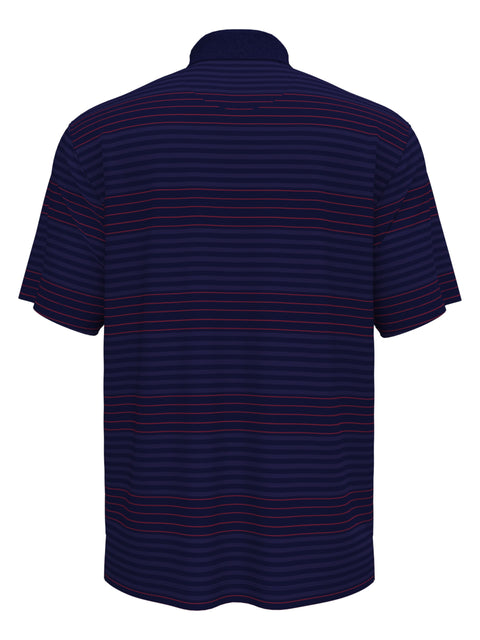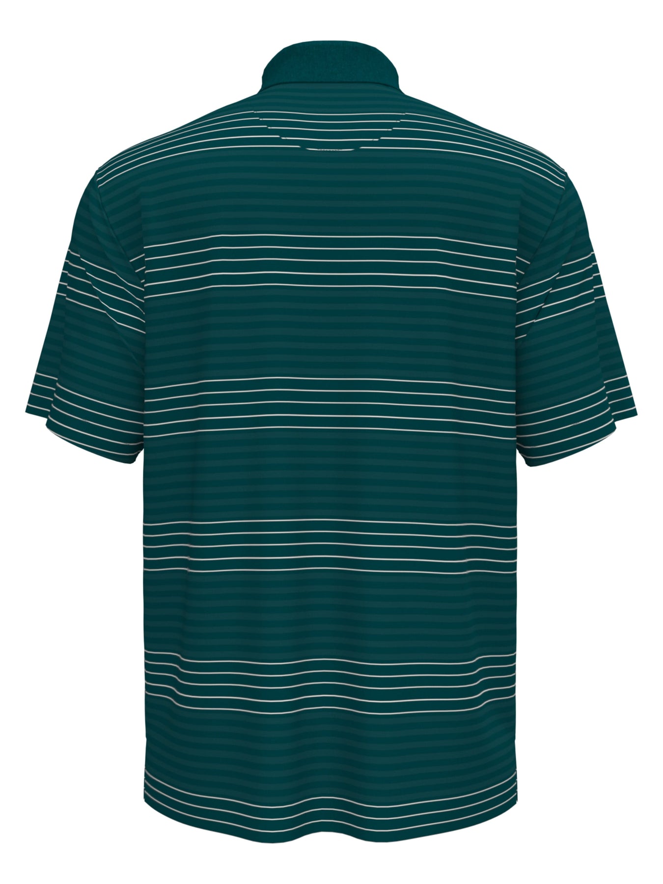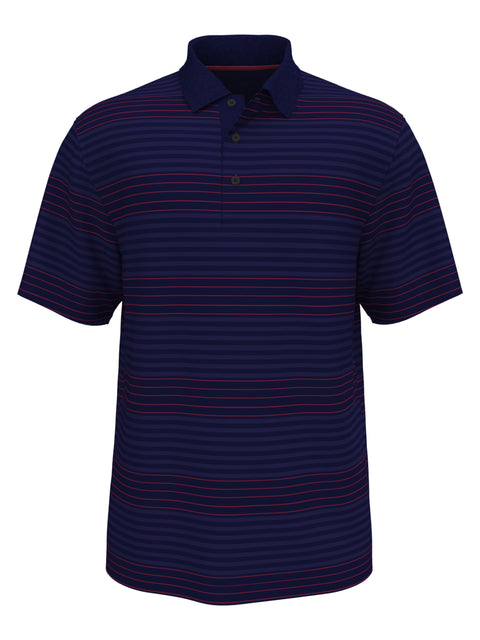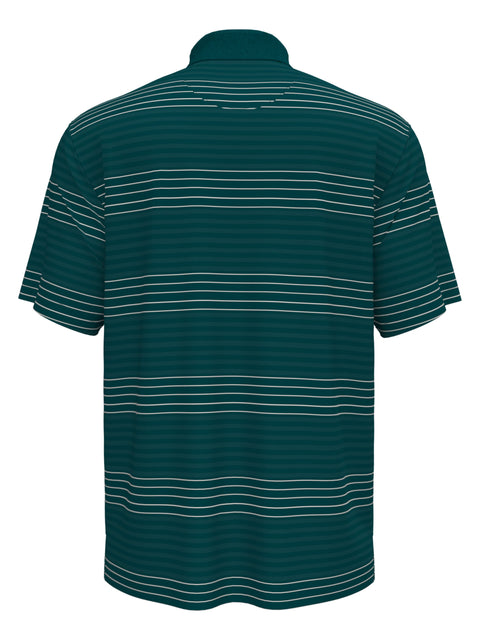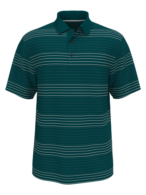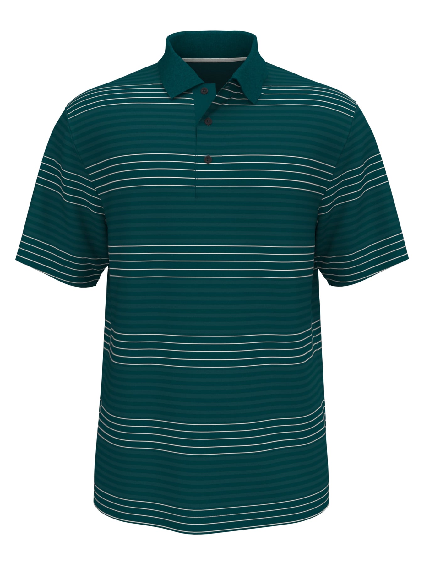 Add some energy to your golf attire with this Jack Nicklaus men's golf polo. The golf shirt features an allover pattern of stripes for style that stands out from tee to green. Made with interlock fabric, the golf top has natural stretch that allows you to swing smoothly. Built-in sun protection protects your skin from damaging UV rays as it prevents them from penetrating through the material. Moisture-wicking technology moves perspiration away from your skin to keep you feeling dry as the day heats up so that you can continue to play in comfort.