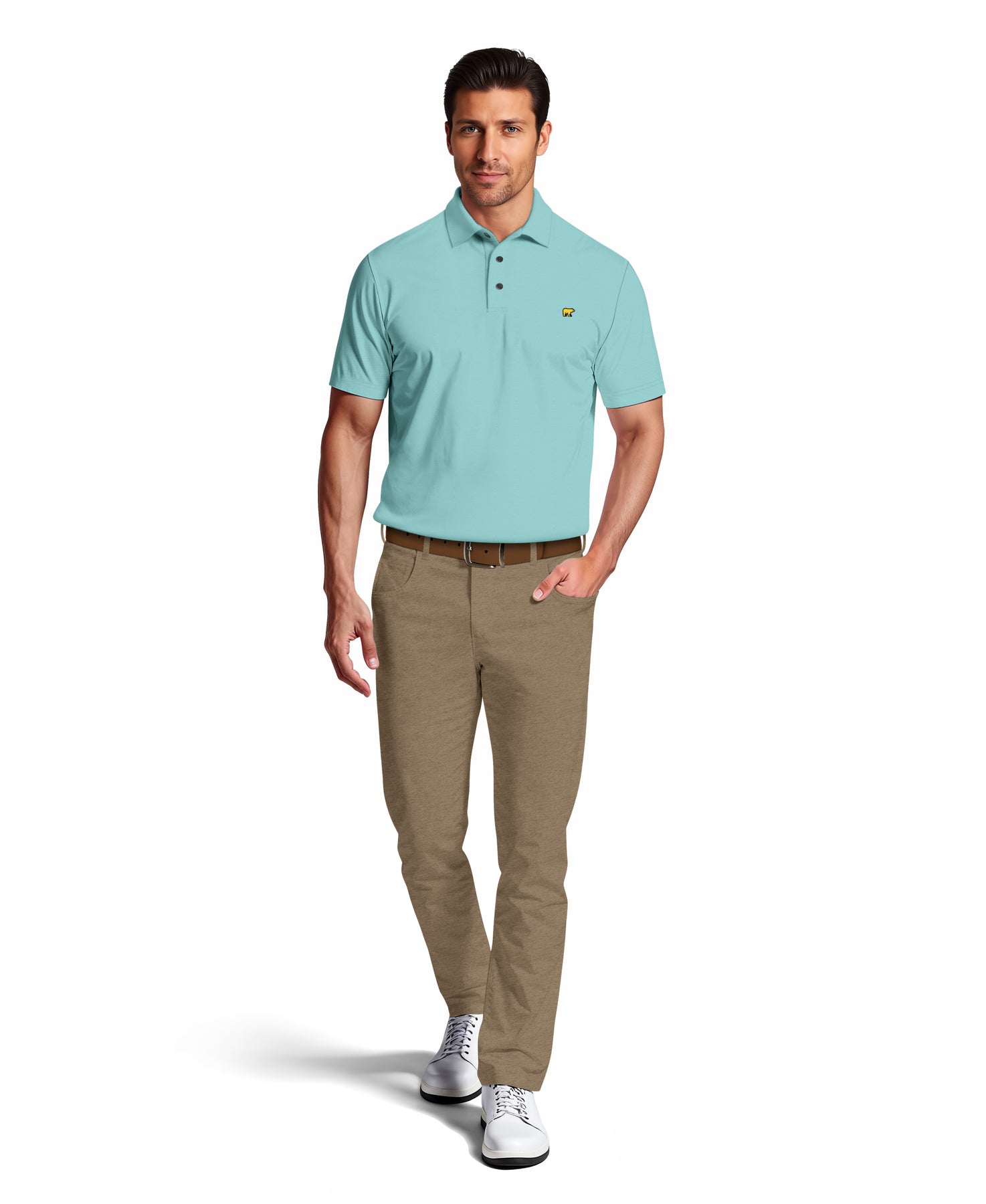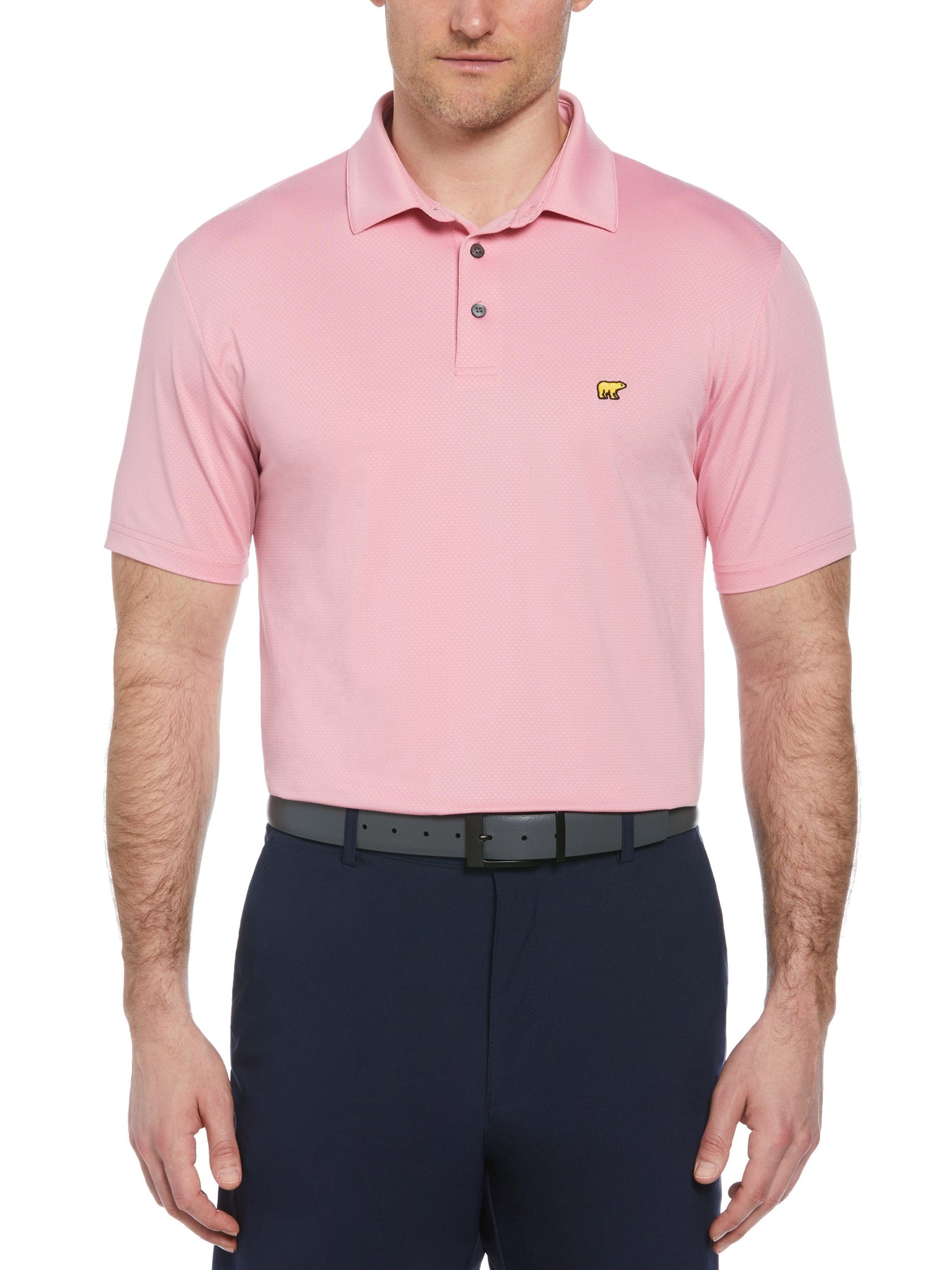 Elevate your golf game with the Jack Nicklaus Men's Short Sleeve Texture Solid Polo. This polo offers exceptional moisture-wicking, sun protection, and enhanced stretch for unrestricted movement on the course. The subtle jacquard texture adds a sophisticated touch, while the self-collar maintains a sharp, classic look.