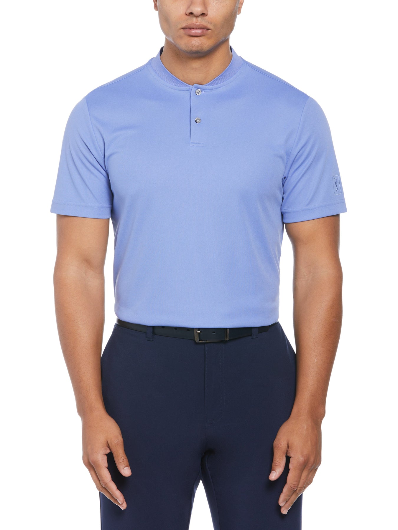 A ribbed baseball-style collar adds a sleek update to this classic solid-colored men’s golf shirt from PGA TOUR APPAREL. Sure to quickly become a staple of your wardrobe, this men’s golf top offers smart performance features like moisture wicking and sun protection to help you stay comfortable and dry as you play through your round. It has stretch shoulder seams to let you make powerful swings without feeling constricted. Pique fabrication weaves raised cords into the material, adding a sophisticated textured look. Great for eco-conscious golfers, this top is crafted using 30% recycled polyester made from plastic bottles.