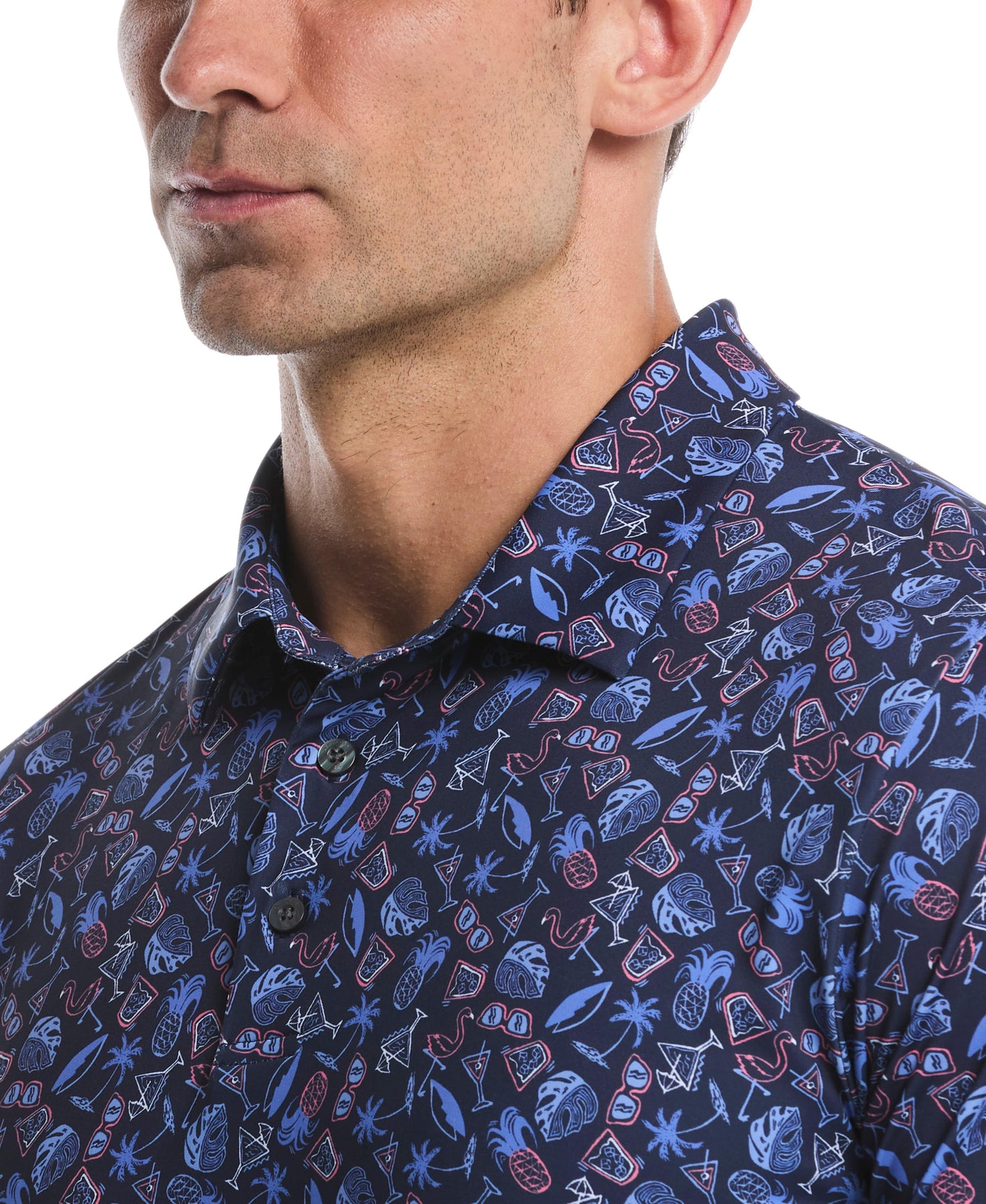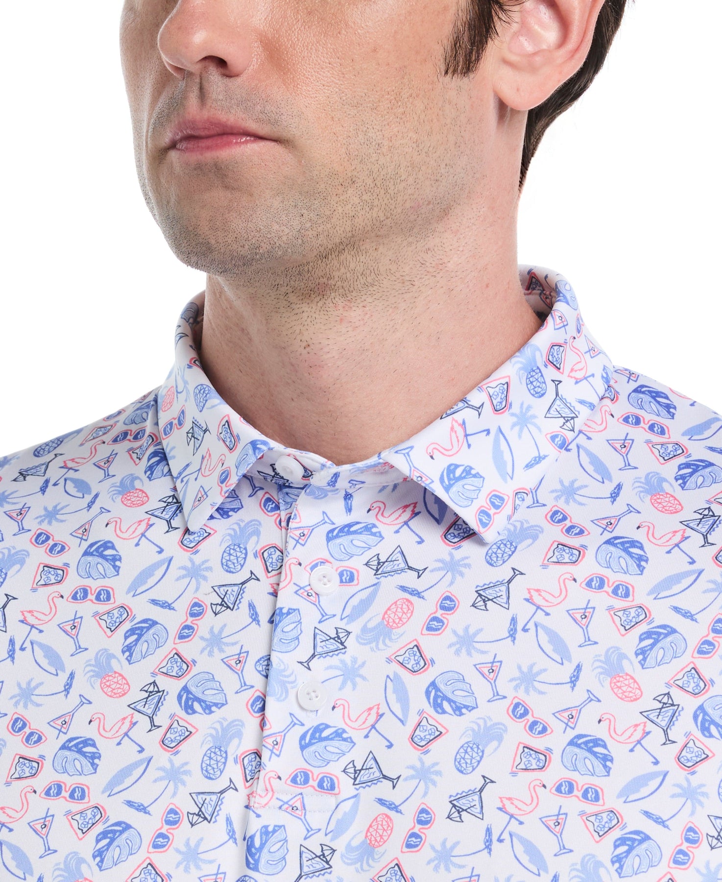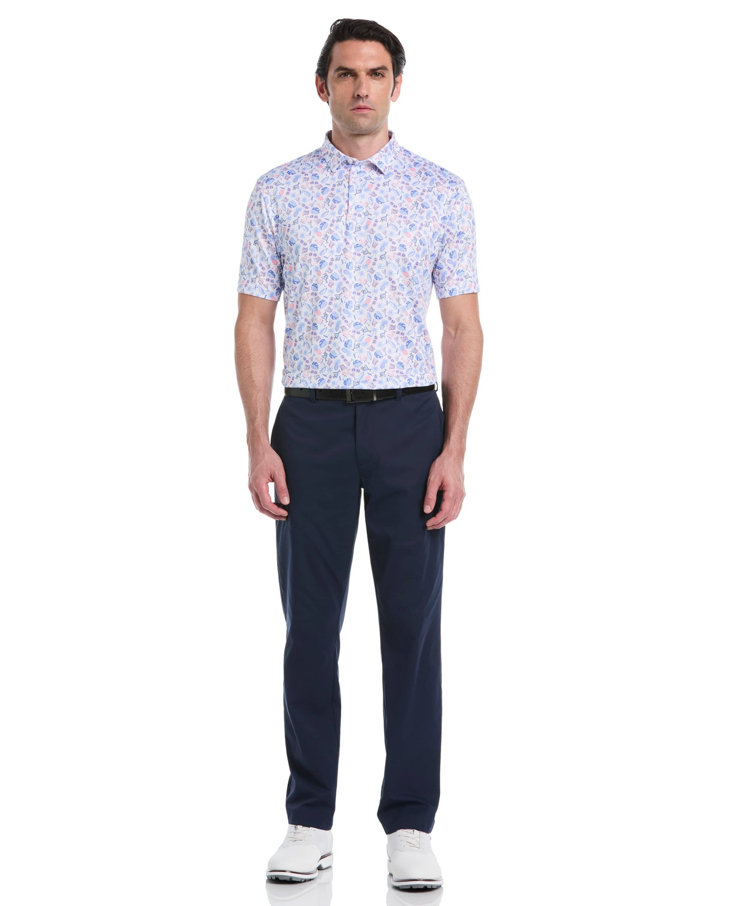 This Ben Hogan men's golf shirt has a fun spring-themed print for sunny days out on the green. The golf polo shirt is made with soft and lightweight single knit fabric that's comfortable to wear in warm weather. It features moisture wicking to help keep you feeling dry, so you can focus on making each swing with your best form. This polo is ideal to wear for lunch or while relaxing along the water front. The vibrant color adds an element of flare for a relaxing atmosphere.