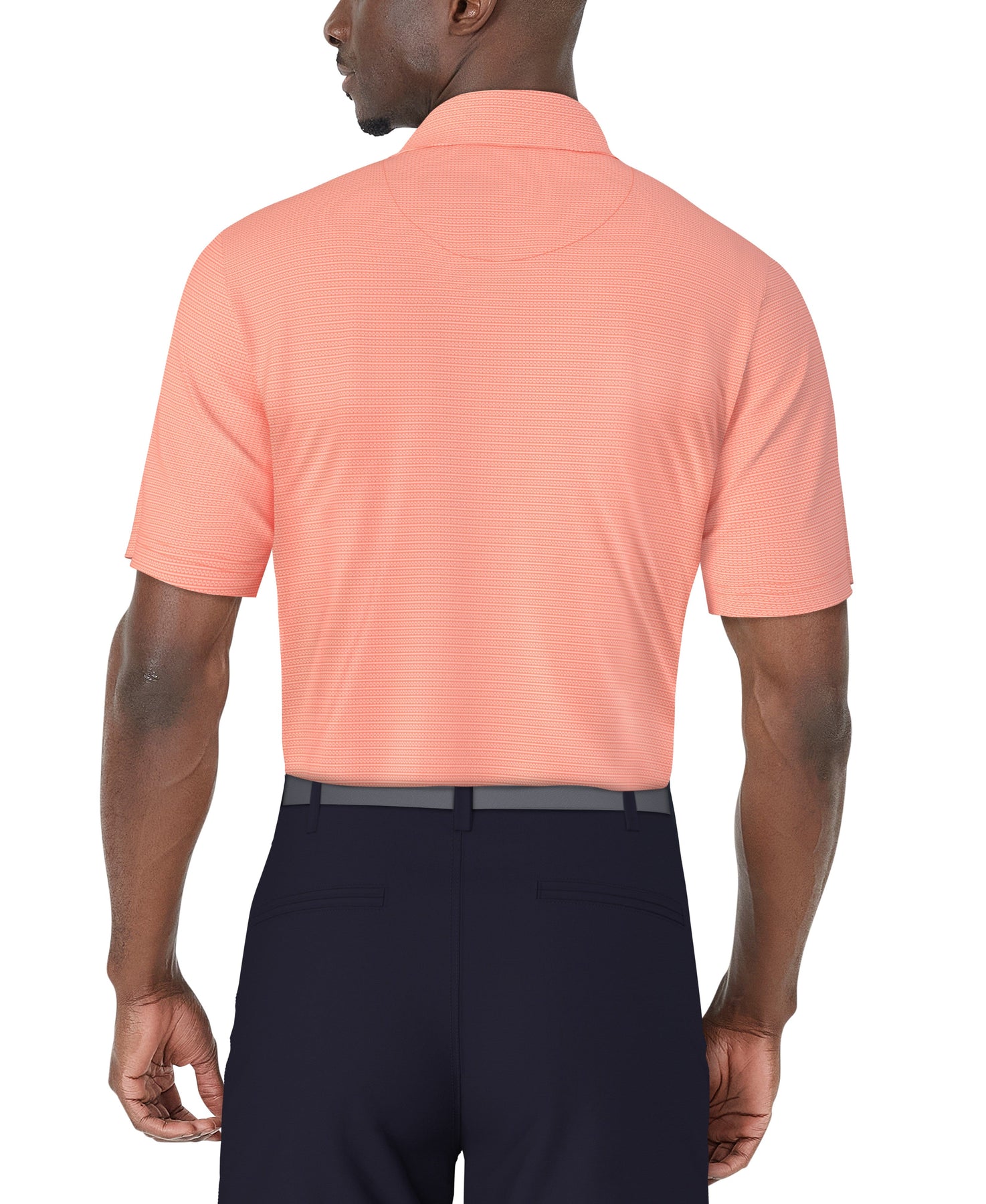 This Men's Horizontal Print Golf Polo from PGA Tour features a bold horizontal print for a modern and eye-catching look. Crafted from a comfortable blend of polyester and elastane, it offers both flexibility and durability. Moisture-wicking technology helps keep you cool and dry during your game, while built-in sun protection safeguards your skin from harmful UV rays. The stretch shoulder seams allow for a full range of motion, making it the ideal choice for golfers seeking a stylish and functional polo.