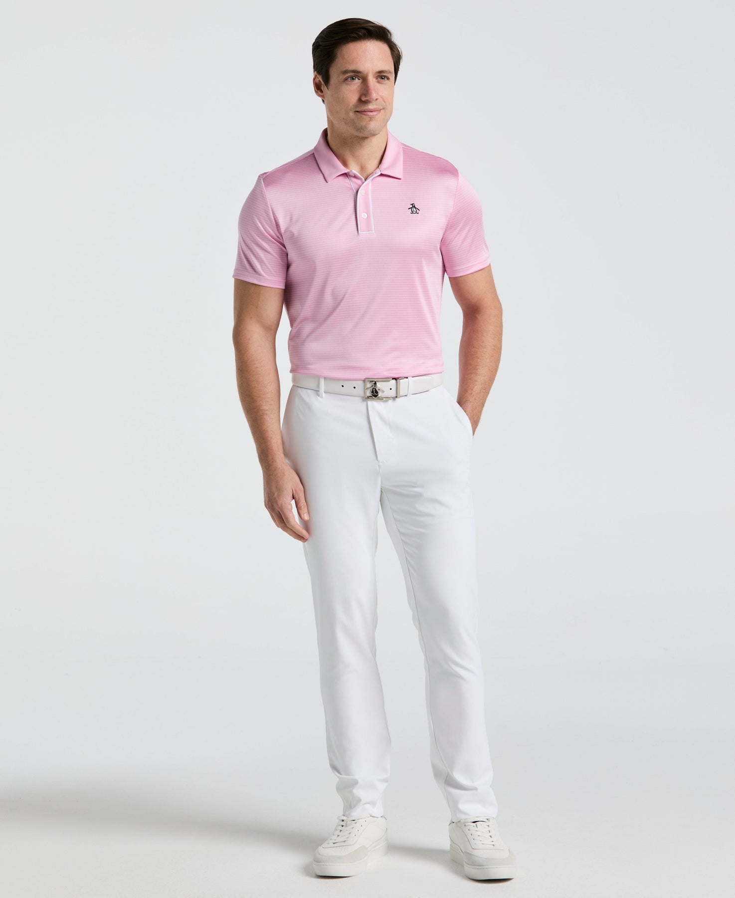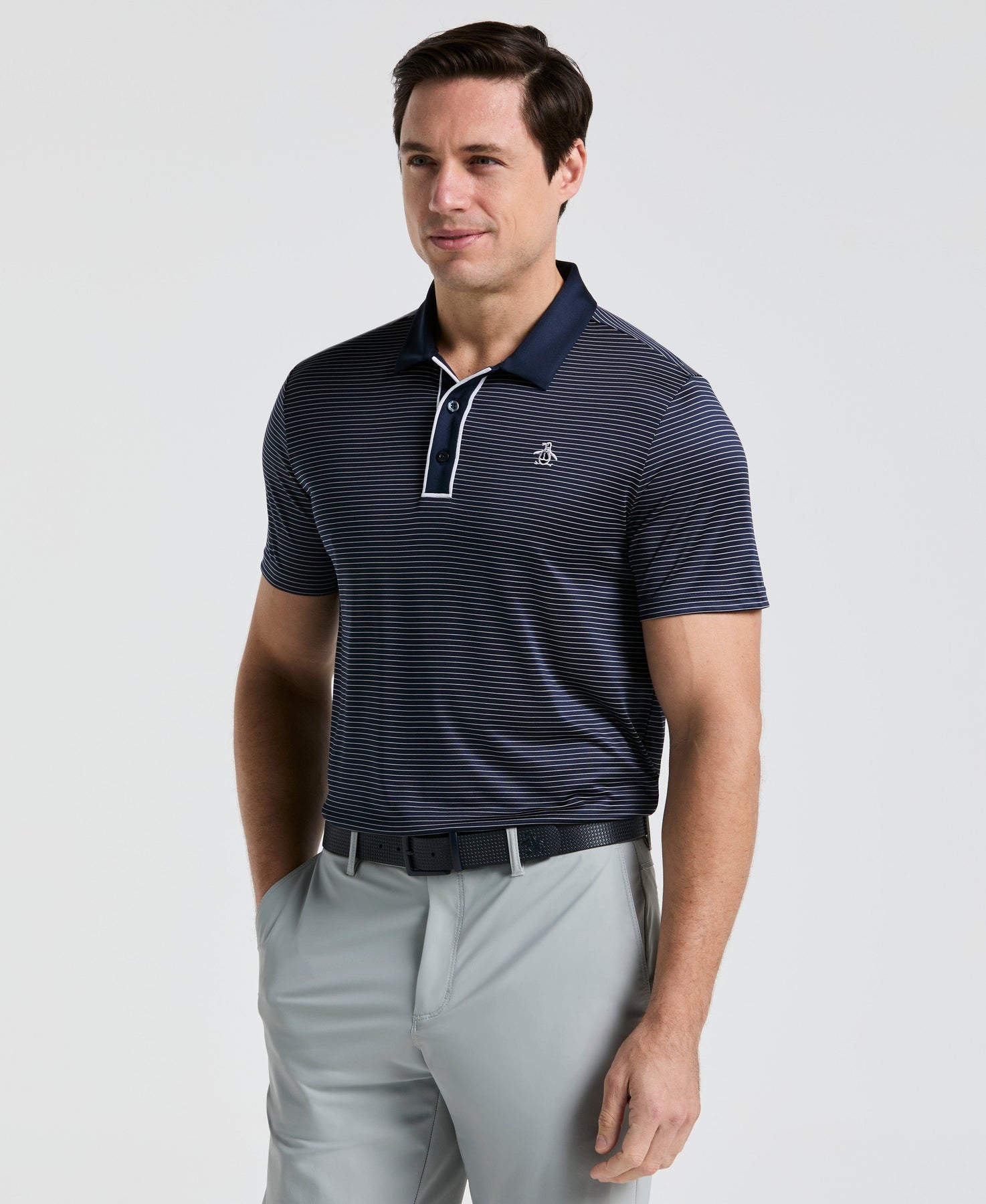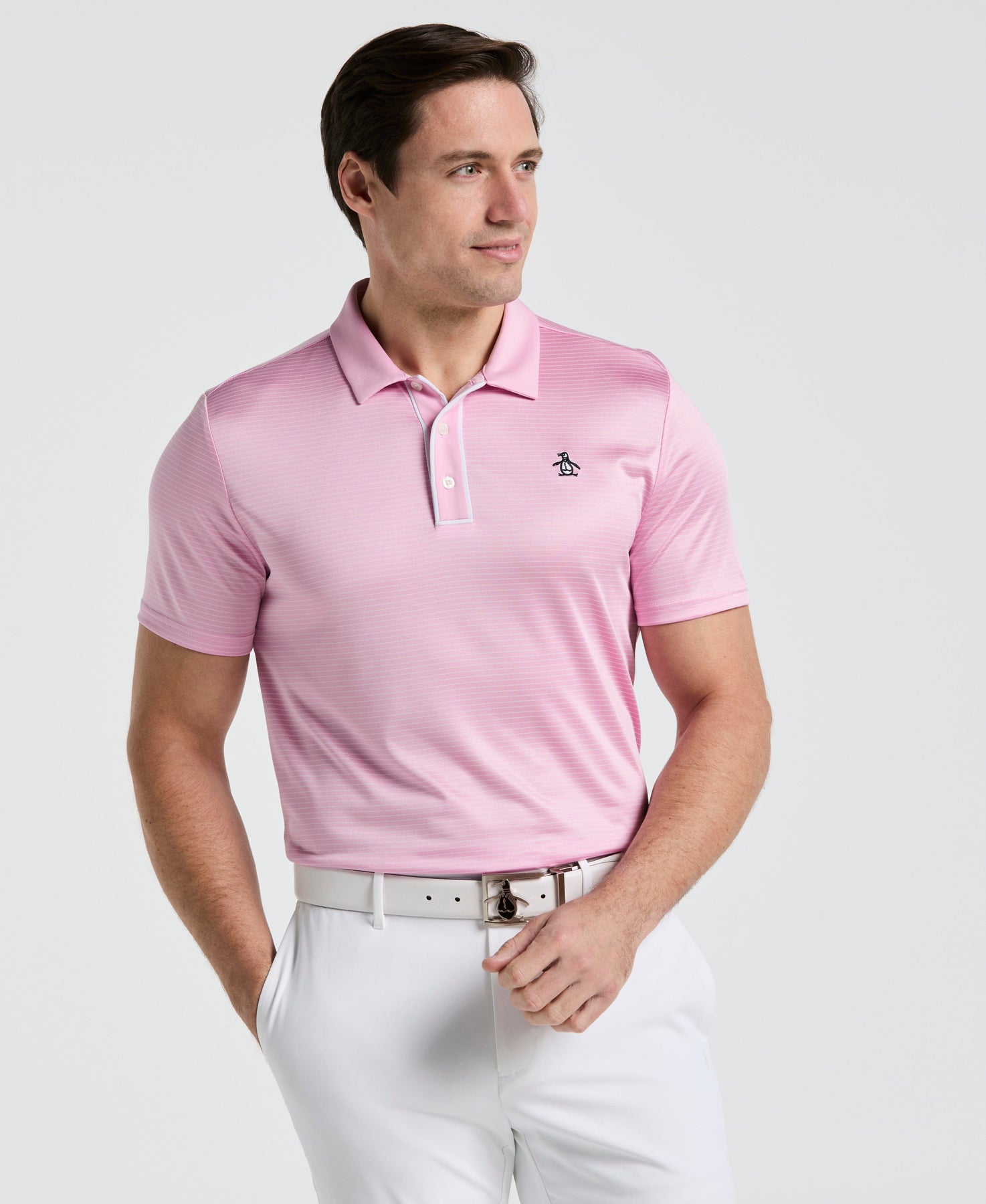 Stay cool, dry, and stylish in our Short Sleeve Stripe Polo. Made from a soft and smooth jersey fabric, this polo offers ultimate comfort and is enhanced with stretch for the perfect fit. With moisture-wicking technology, you'll stay dry all day long. Machine washable.