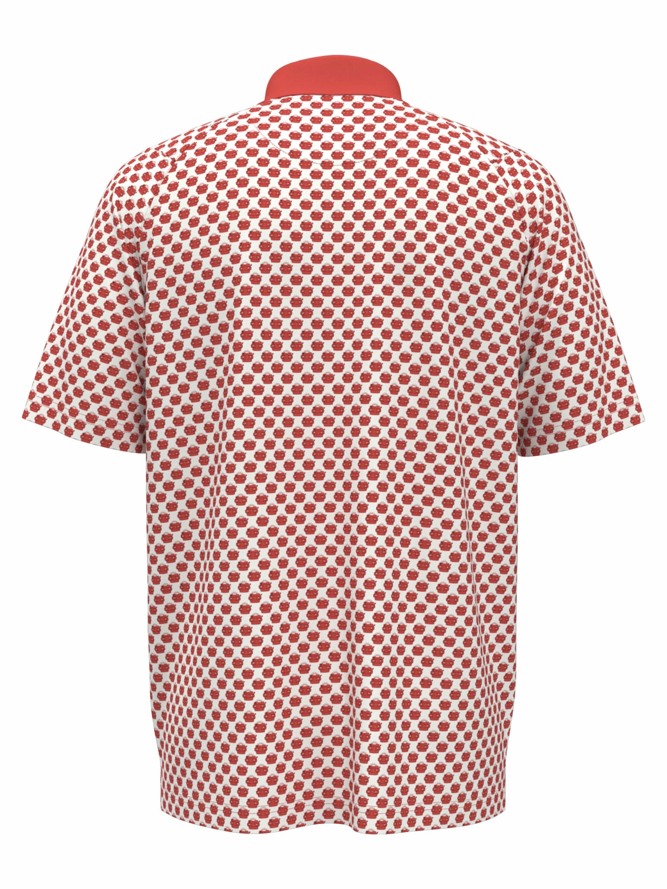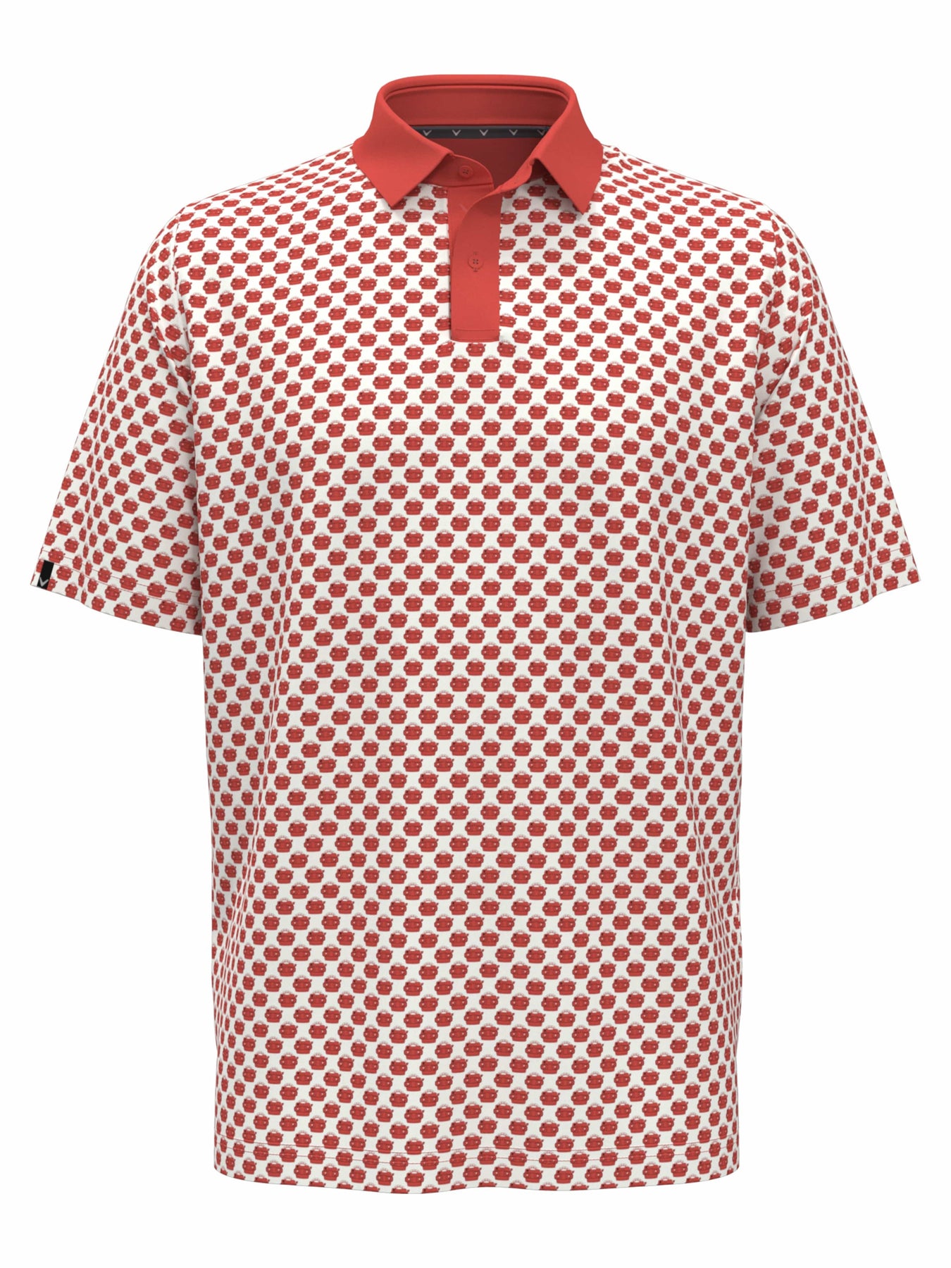 Take in the view out on the course or on nights out with the guys in this eye-catching printed golf shirt from Callaway. Covered with a stylish view master print, the golf polo shirt is crafted from a lightweight single knit fabric for all-season comfort. It has sun protection technology built in to help you enjoy your round safely, and the material wicks away moisture to help keep you dry. A generous amount of stretch in the fabric and Swing Tech™ technology combine to help provide a full range of motion, so you can make each swing with power and precision. An easy-care and eco-friendly option, the men’s golf shirt is crafted with 30% recycled polyester.